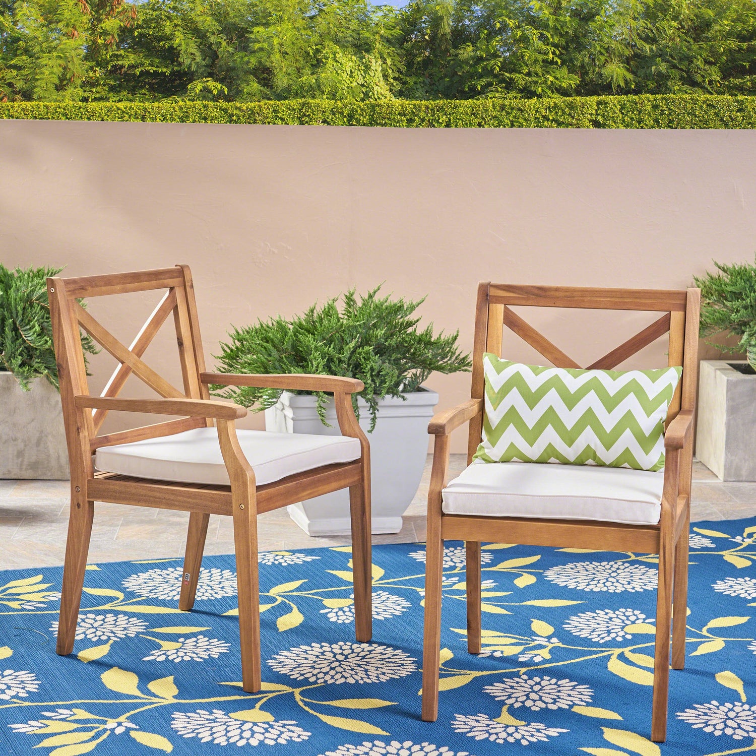 Christopher Knight Home Peter | Outdoor Acacia Wood Dining Chair Set of 2, Teak/Cream Cushion