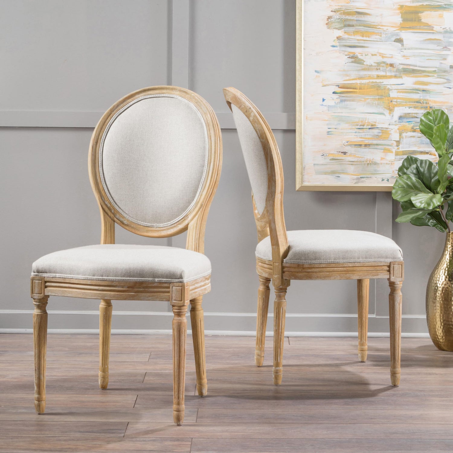 Christopher Knight Home Phinnaeus Polyester Beige Fabric Dining Chair (Set of 2), 2-Pcs Set