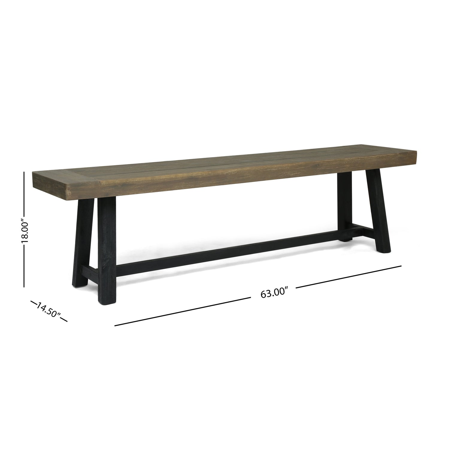 Christopher Knight Home Toby Outdoor Acacia Wood Bench, Sandblast Gray Finish and Black