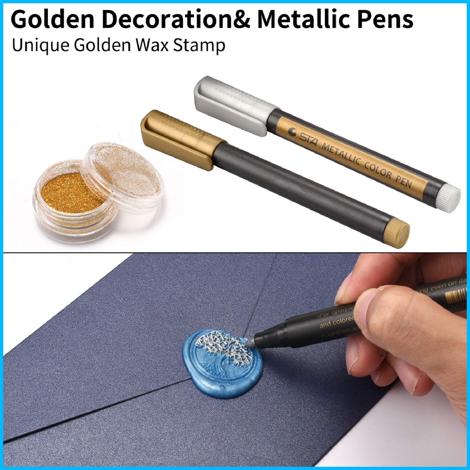 - Golden Decoration Unlike normal wax seal kit, our kit not only includes normal accessories, but also have golden decoration and 2pcs metallic pens. You can make unique and beautiful wax stamp seal.