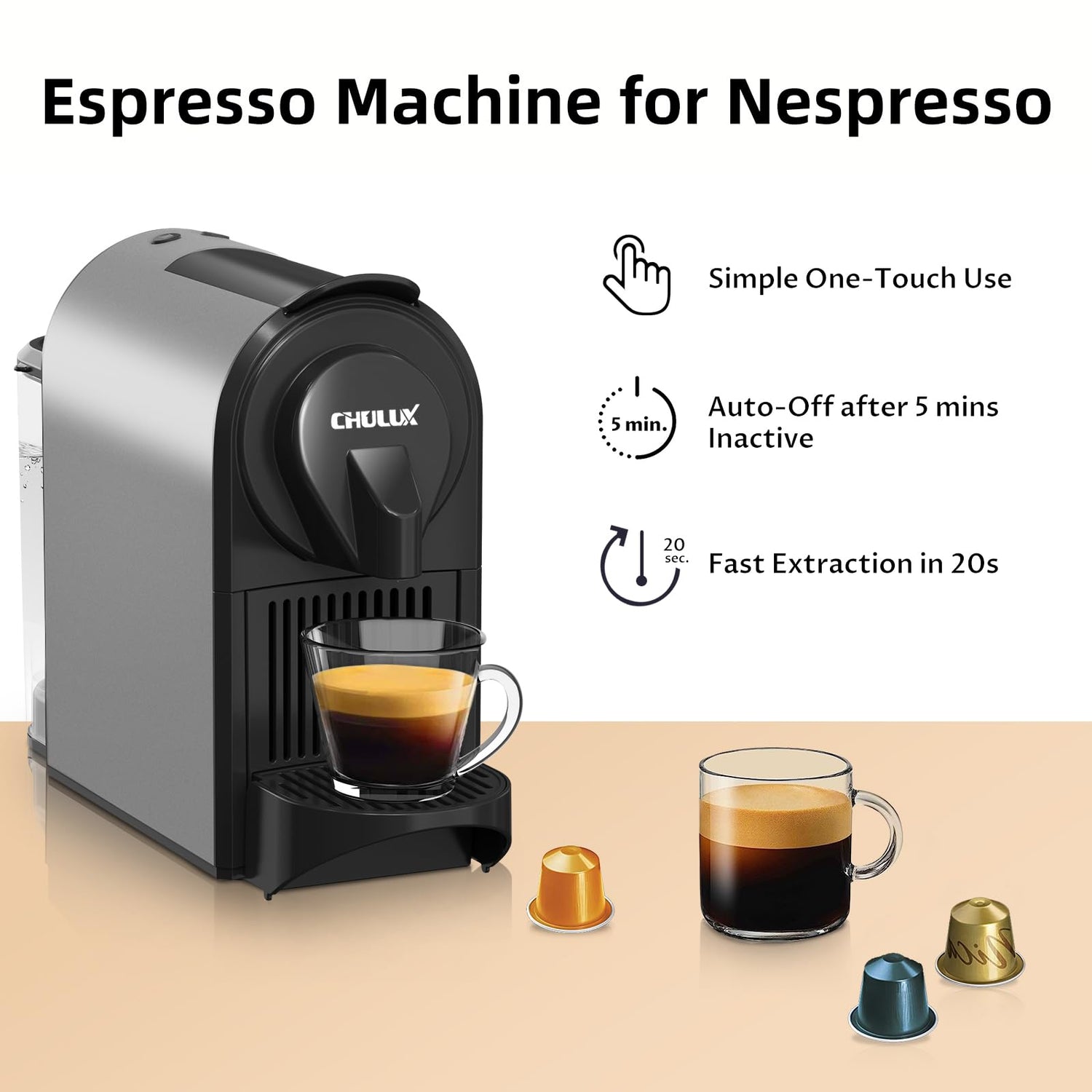 CHULUX Bafè-Pro Espresso Machine, Mini Espresso Machine for Nespresso Original Capsules, Single Serve Coffee Machine for Home Espresso & Lungo Maker, Italian ODE 20 Bar Pump, Metallic Gray