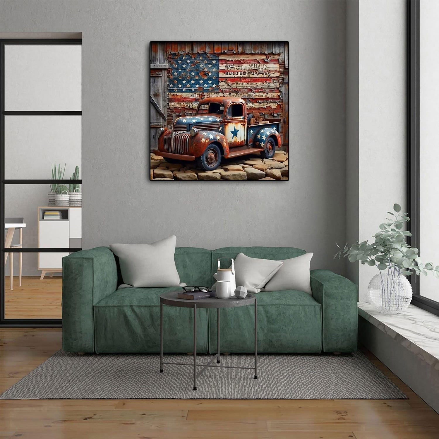 CHWGLFGG 5D Car Diamond Art Kits for Adults Beginners,DIY Full Round Drill Truck Diamond Painting Kits American Flag,Paint by Diamonds Dot Gem Art Crystal Easy,Home Wall Decor 11.8X11.8Inch