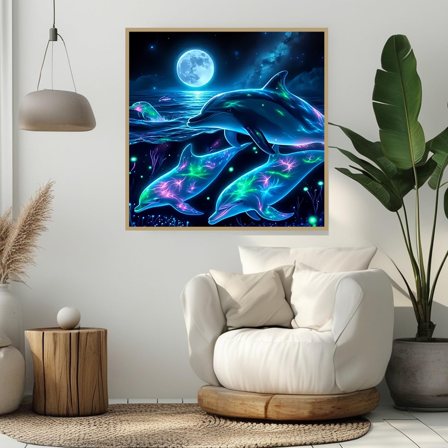 CHWGLFGG 5D Diamond Art Kits for Adults Beginners, Dolphin Diamond Painting Kits, DIY Full Round Drill Paint by Diamonds Dot Gem Art for Adults, Home Wall Decor 13.7X 13.7 Inch