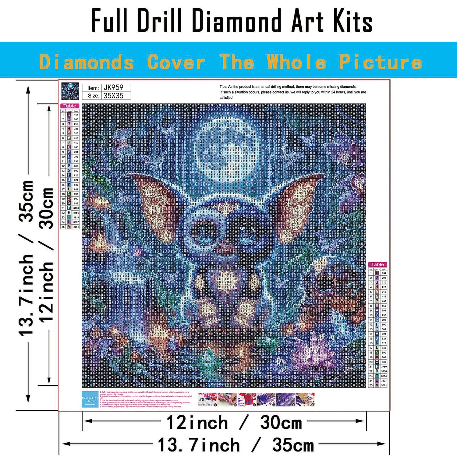 3.If diamond painting kits you received is missing diamonds or accessories, we will provide you with a brand new diamond art kit!