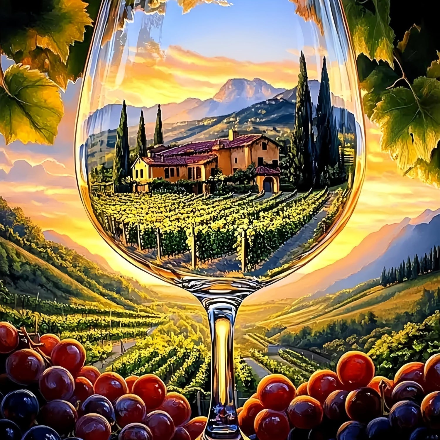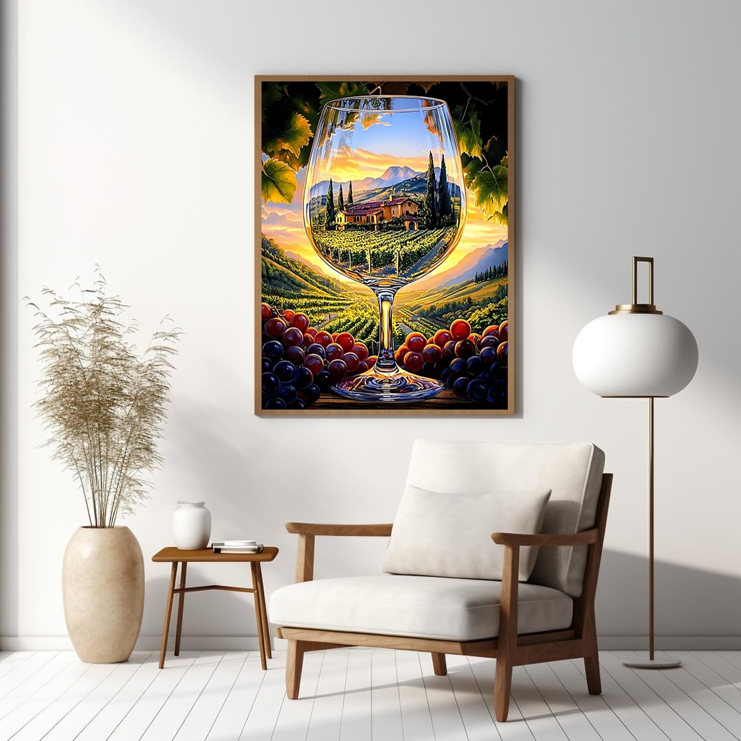 CHWGLFGG 5D Diamond Art Kits for Adults Beginners, Landscape Wine in Glass Diamond Painting Kits, DIY Full Round Drill Paint by Diamonds Dot Gem Art for Adults, Home Wall Decor 12x16 Inch