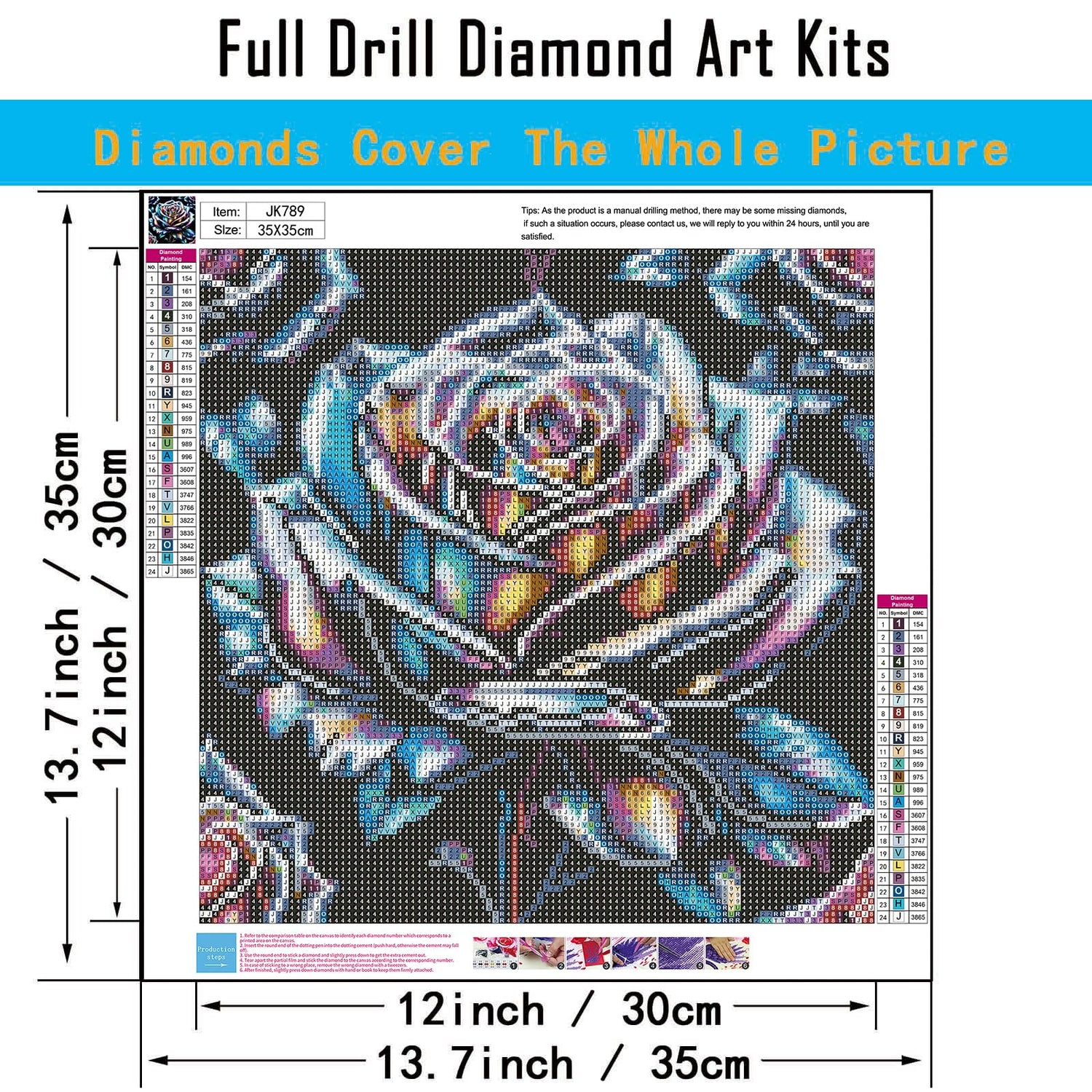 3.If diamond painting kits you received is missing diamonds or accessories, we will provide you with a brand new diamond art kit!
