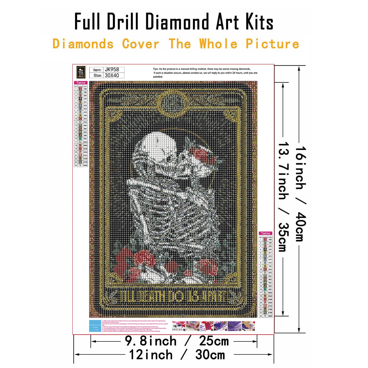 CHWGLFGG 5D Diamond Art Kits for Adults Beginners, Tarot Card Skull Kissing Diamond Painting Kits, DIY Full Round Drill Paint by Diamonds Dot Gem Art for Adults, Home Wall Decor 12x 16 Inch