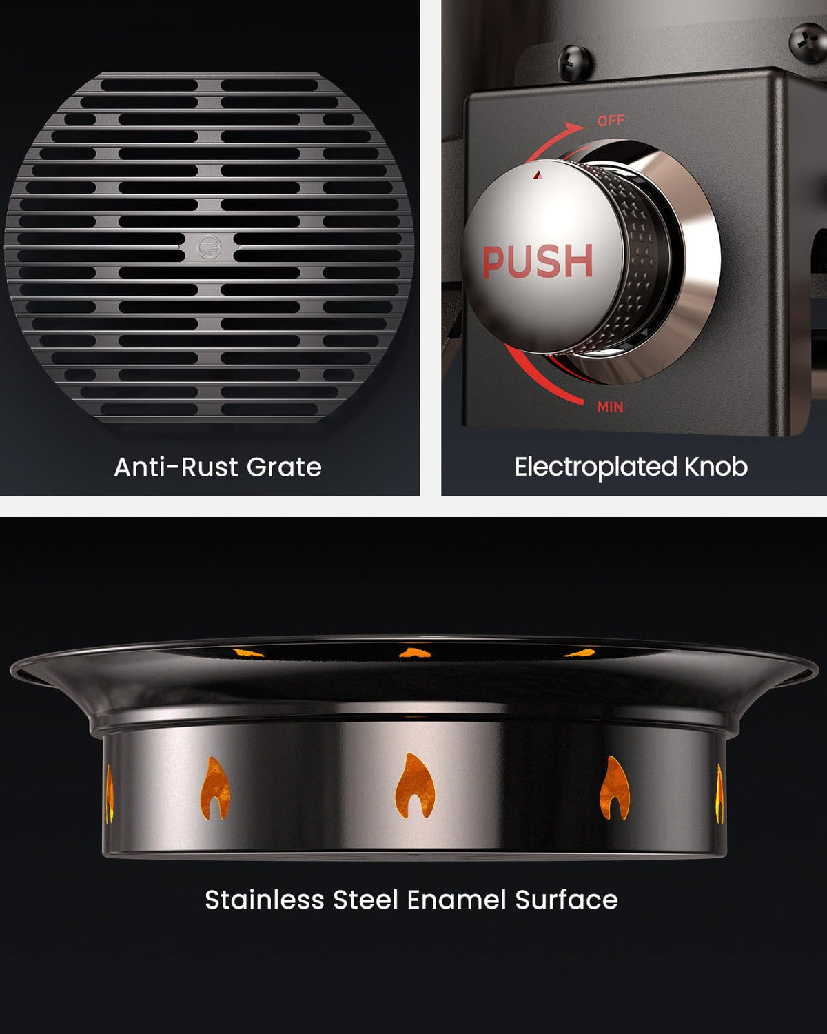 - Cast Iron Grate: The propane fire pit includes a rust-proof grate for long-lasting durability. Heat food or liquids in a pot or kettle (not included) while enjoying the outdoors in your backyard, patio, or camping. NOTE: Avoid direct contact between food and grill.