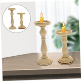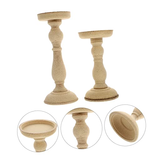 Ciieeo 2 Pcs Candle Holders Tabletop Decor Dining Room Table Decor Wooden Decor Unfinished Wood Candle Holder Wood Pillar Retro Candlestick Stand