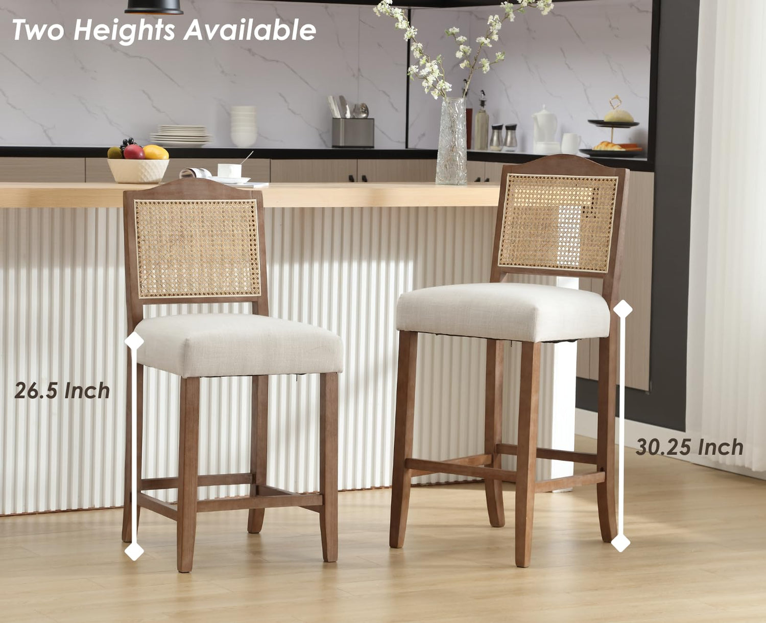 - 【Eye-Catching Island Chairs】This barstool features a beautiful arched rattan back, combining the design aesthetics of retro and modern colors, making the overall shape elegant and retro, making it a perfect match for the rest of your home.