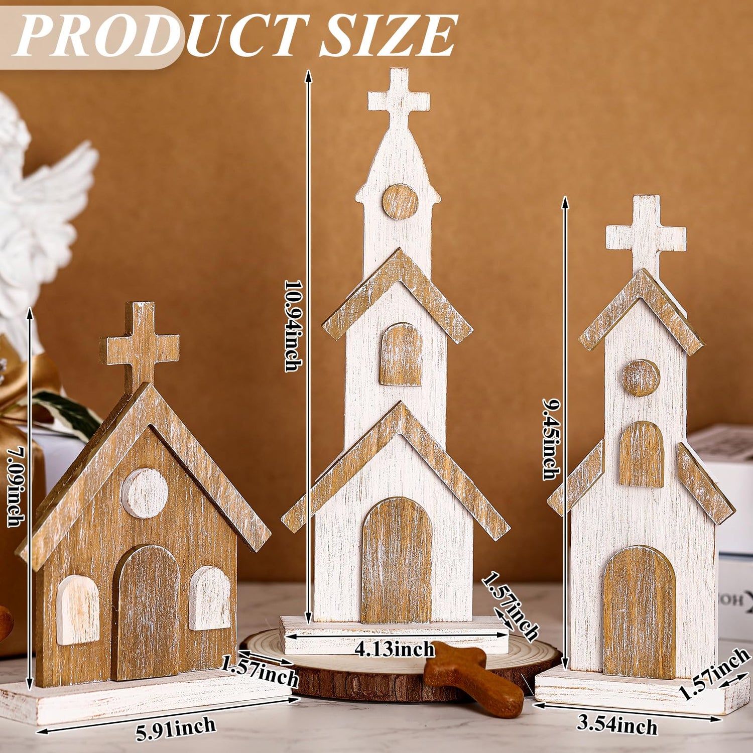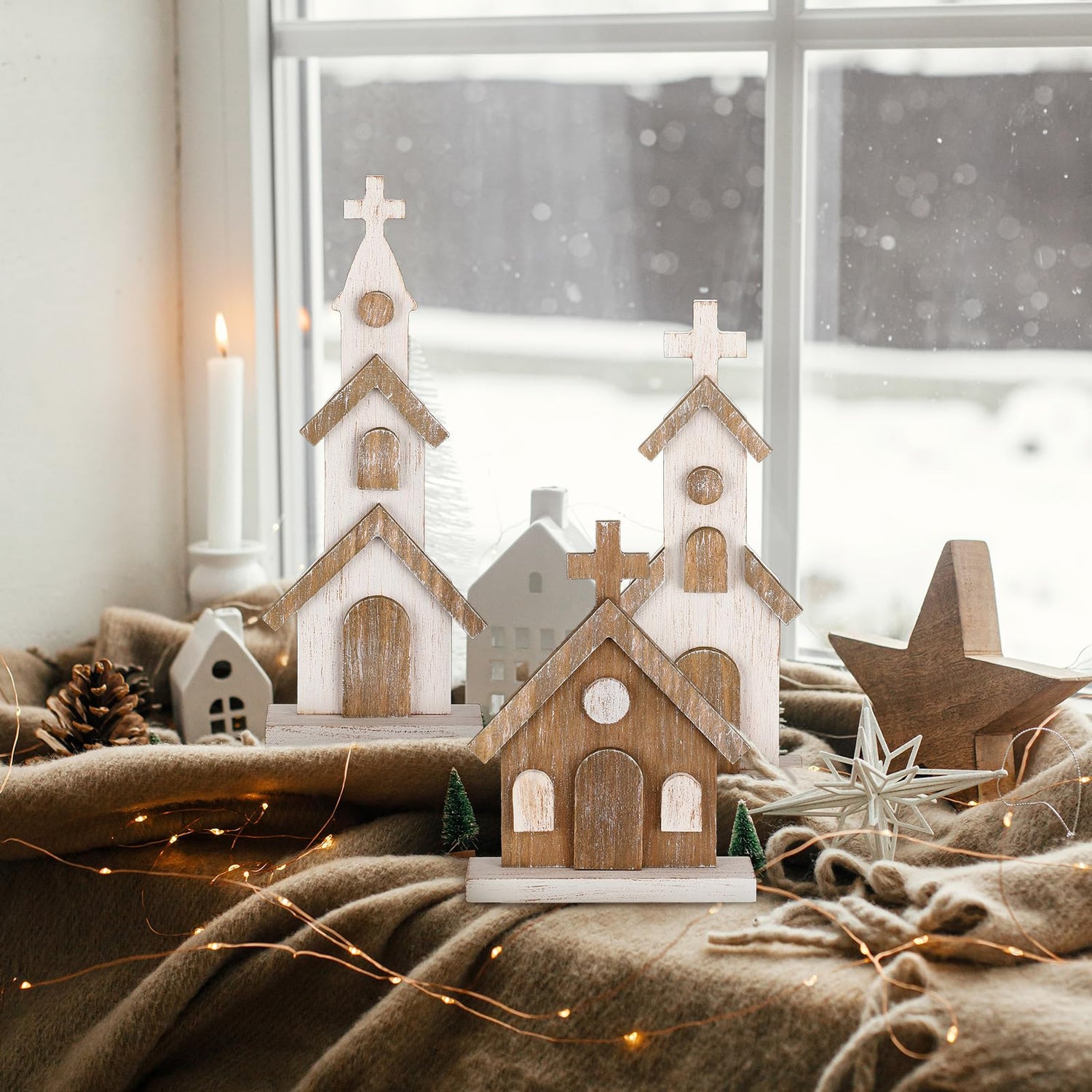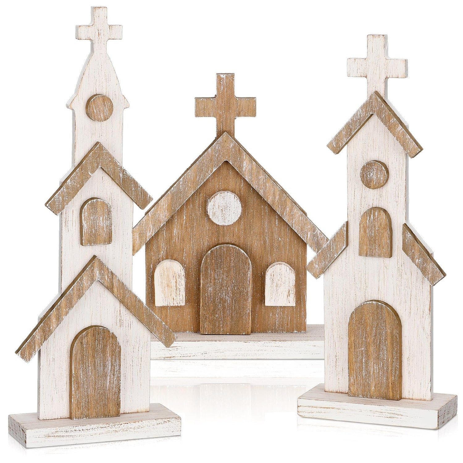 - Exquisite Church Design: our Christmas rustic wooden churches are artfully designed to decorate your festive season in a unique way; Each package includes 3 wooden Christmas churches tabletop decorations in 3 different sizes; Each top is adorned with a cross, a common holiday element for christian homes; Their rustic color paired with the cross gives a fantastic visual delight, ensuring your Christmas time is unforgettable and filled with joy