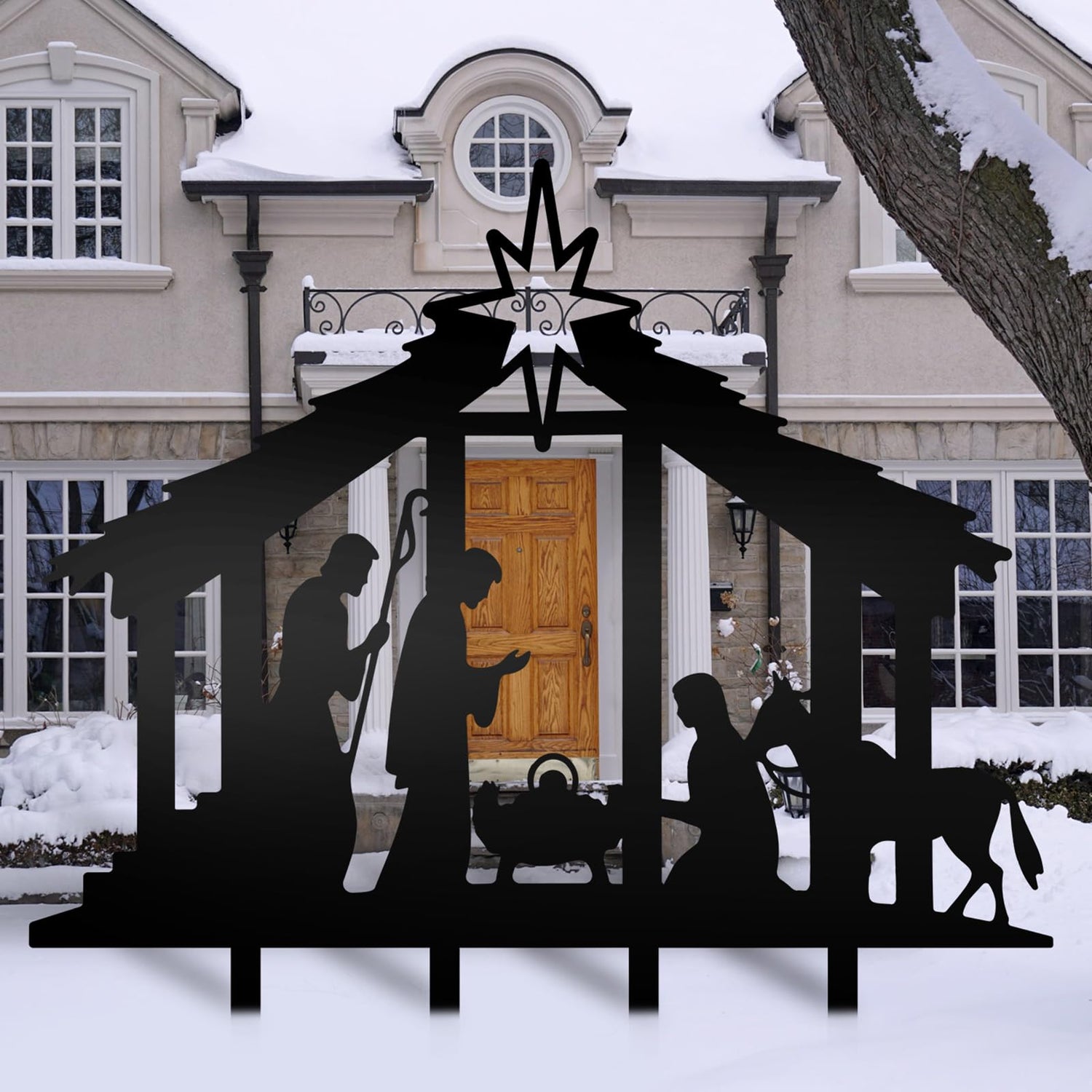 - Nativity Scene: this nativity scene outdoor showcases a pure and beautiful black nativity set, creating a visual presentation of the Christmas story, religious and beautiful, attractive and adorable, which can create a joyful and strong Christmas religious atmosphere