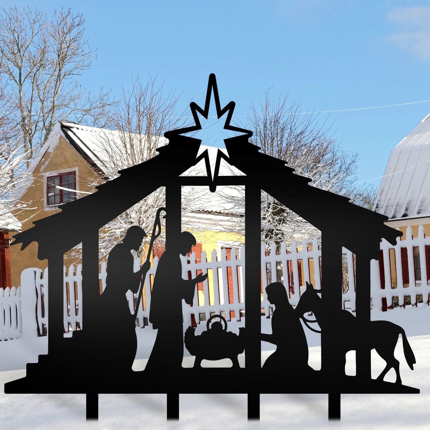 - Easy to Use: this outdoor Christmas nativity set is convenient for you to use, the provided metal stakes allow you to support with the signs, you just need to insert into the signs, then press them into the ground, these metal Christmas yard stakes ca. It is recommended to wear gloves when inserting into the ground to avoid injury