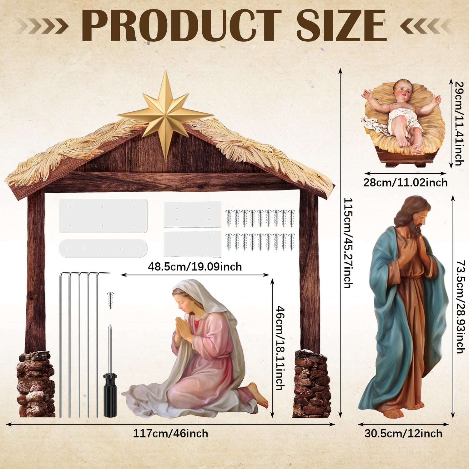 - Complete Set: you will receive a complete and beautiful Nativity outdoor ground set, which includes the Holy Family, Stable; The pattern is realistic, showing our Nativity scene; It embodies the style of Christmas, Jesus, Christian