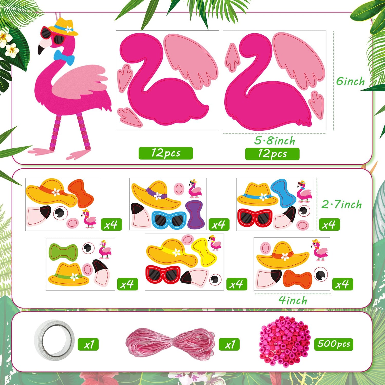 • Complete Flamingo Foam Craft Kit for Summer Fun:This all-in-one flamingo foam craft set includes 24 foam flamingo templates, 500 pink beads, 1 roll of pink rope, and a variety of foam stickers. It’s the perfect tropical DIY kit for kids to enjoy creative summer activity crafts at home or at school.