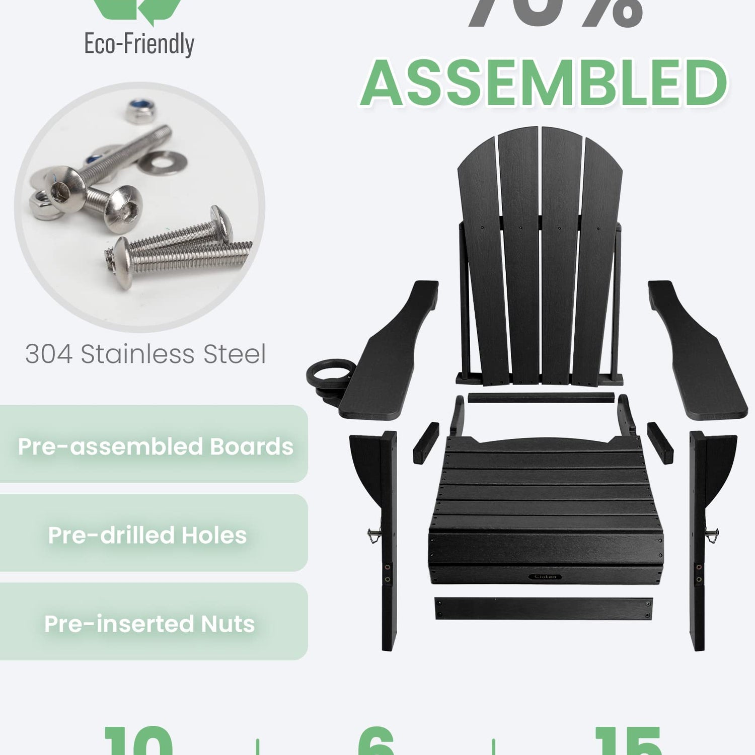 - Easy Storage & Transport: Experience convenience with our folding Adirondack chairs. They can be easily folded and carried, folding flat by simply removing two pins for easy transportation and storage. Perfect for camping or saving space on your patio when not in use