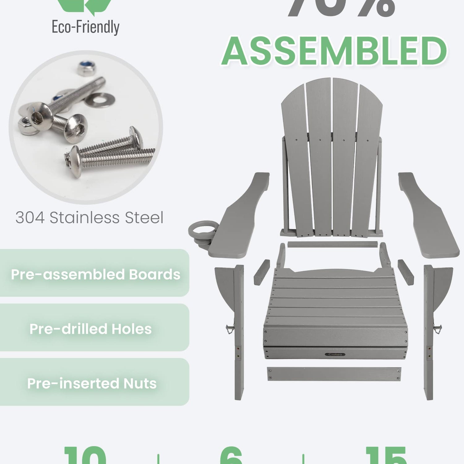 - Easy Storage & Transport: Experience convenience with our folding Adirondack chairs. They can be easily folded and carried, folding flat by simply removing two pins for easy transportation and storage. Perfect for camping or saving space on your patio when not in use.