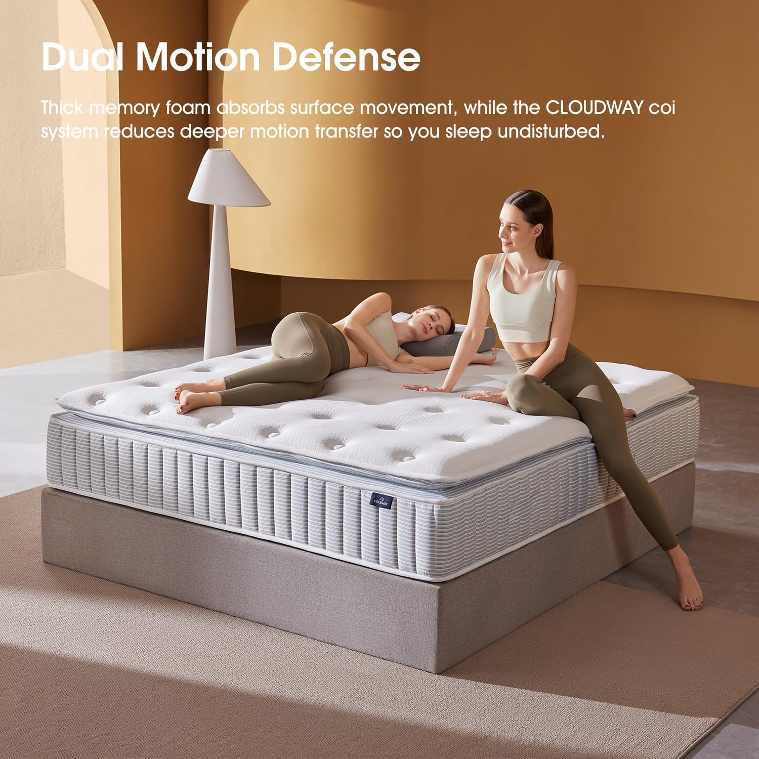 CIOUDWAY – Queen Mattress 14 Inch – Real Hybrid Mattress with Dual-Cooling, 2” Ventilated PCM Memory Foam, Reinforced Edge Support, Zoned Coils for Pressure Relief and No Motion Transfer