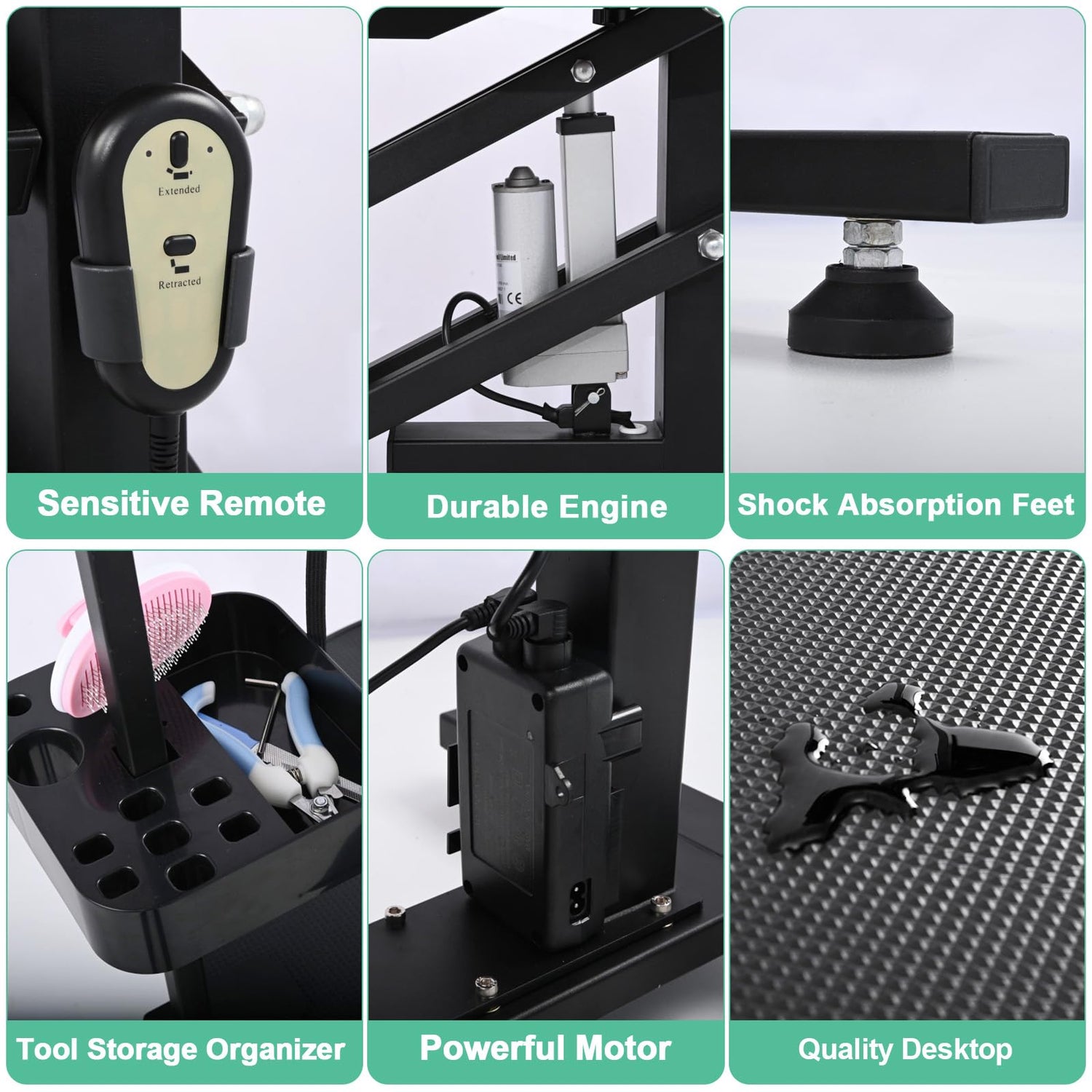 - Stability and Powerful : With a H-lift base and 4 rubber shock absorption feet, the dog grooming table boasts great stability and durability. The motor under the table is low-noise and powerful