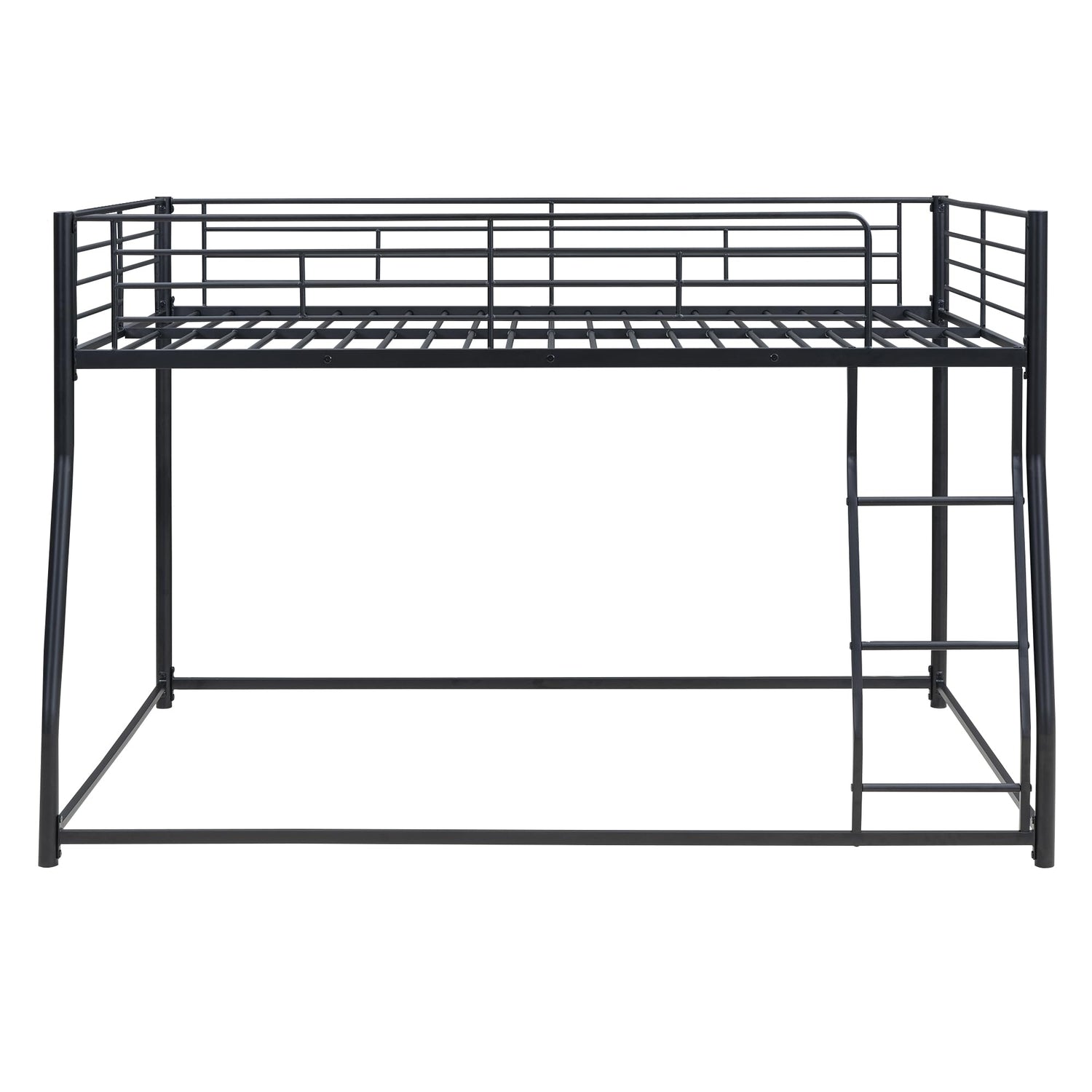 Details: CITYLIGHT Metal Bunk Beds Full XL Over Queen, Heavy-Duty Metal Floor Bunk Bed Frame with Ladder and Guardrail for Kids, Teens, Adults, Black