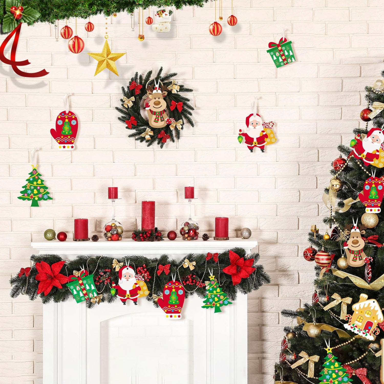 Civaner Christmas Craft Kit for Kids Christmas Tree Ornaments Hanging Art and Craft DIY Project Gingerbread House Crafts Kit Christmas Box Claus Reindeer Christmas Crafts for Kids, 6 Styles