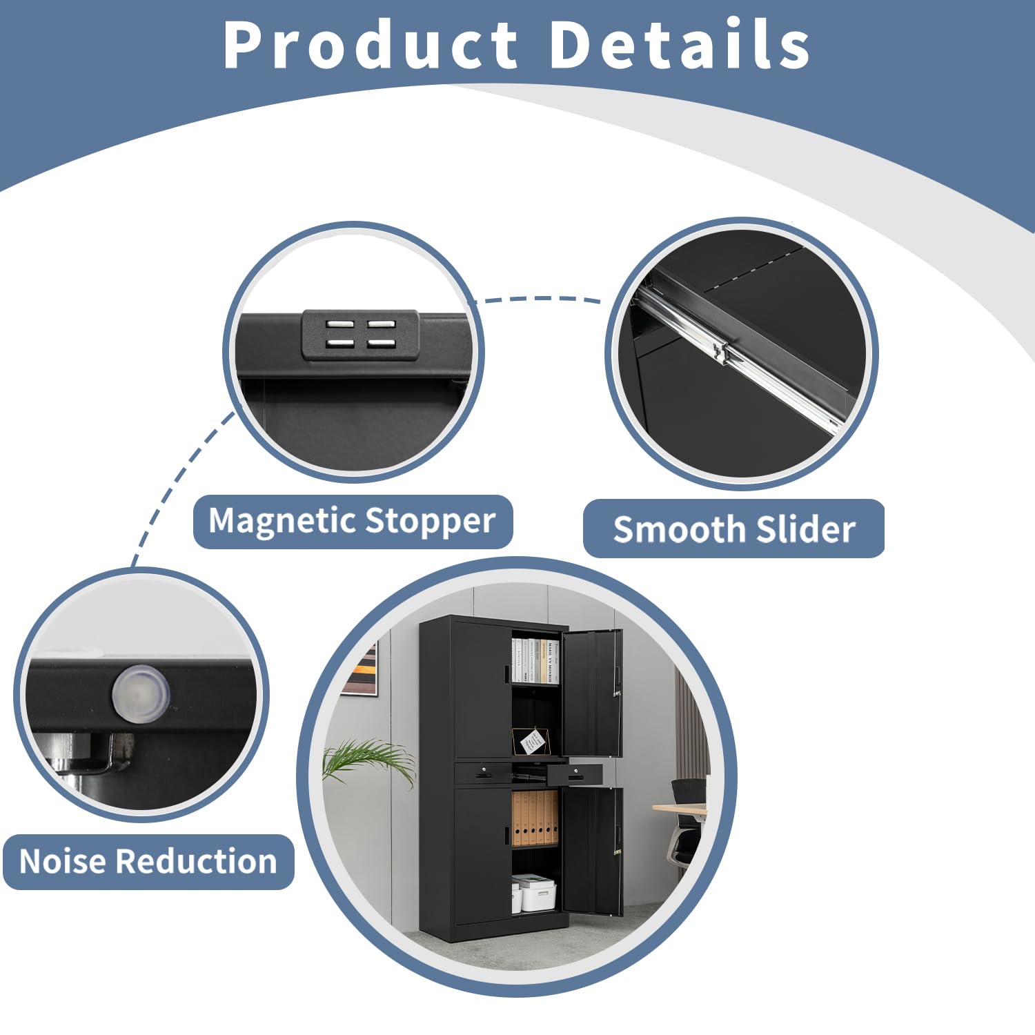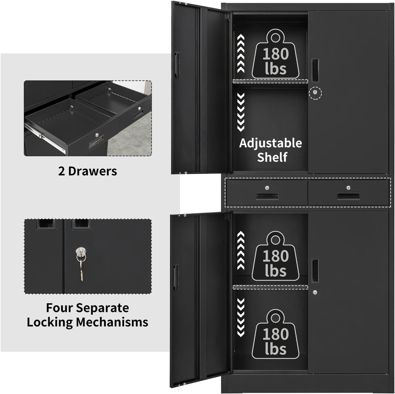 - [ Multipurpose ] The metal cabinet is made of quality steel plate, which has large load-bearing capacity. The storage cabinet with a secure locking system, so it’s perfect for storing valuables or important documents. As a result, the metal storage cabinet can be used in offices, kitchens, garages, classrooms, living room, basement, etc.