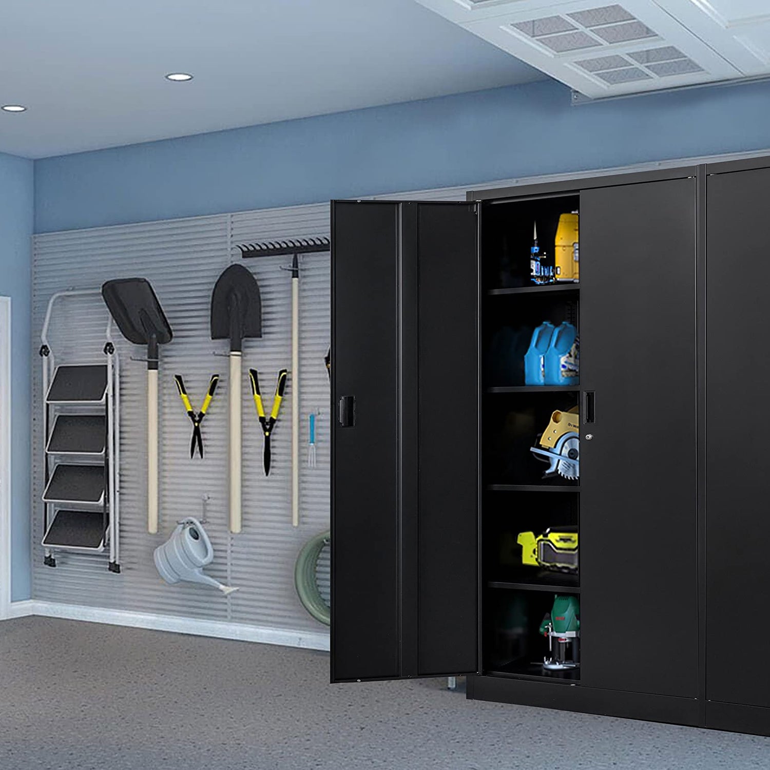 CJF Metal Storage Cabinet with Locking Doors and 5 Adjustable Shelves, Office Steel Cabinet for Garage, Classroom, School, Home, Pantry