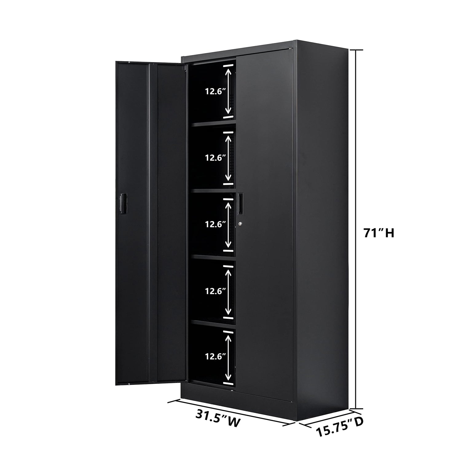 - 【ADJUSTABLE SHELF】This metal storage cabinet has four adjustable shelves. Each shelf can hold up to 180 lbs. This locking storage cabinet can meet your own unique storage and organizational needs.