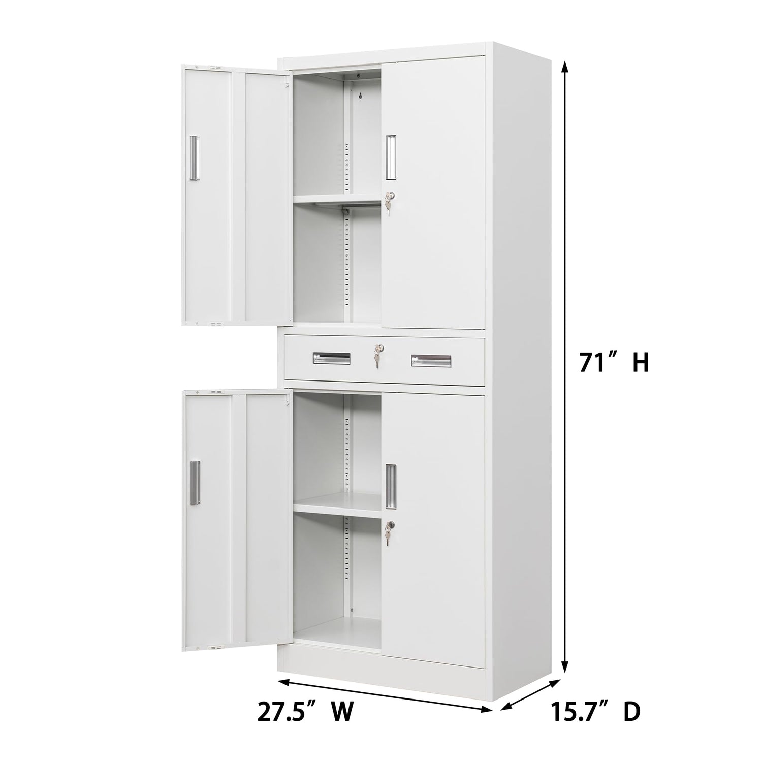 - 【Sturdy and Safe】 The metal storage cabinets are made of heavy gauge cold-rolled steel plate. High-quality materials ensure this product is more durable, stable, and long service time, keeping you and your family safe all time. Doors and drawer come with locks to keep children out.