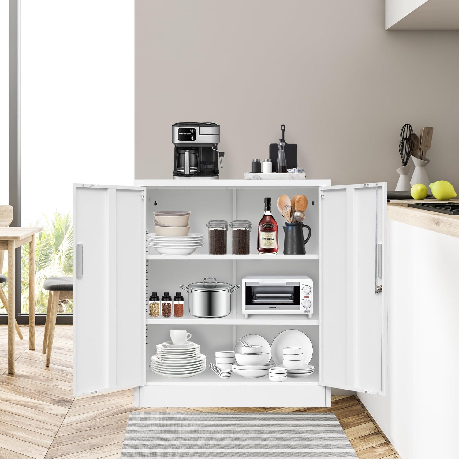CJF Metal Storage Cabinets with Shelves and Doors, Sideboard Buffet Cabinet for Kitchen, Entryway, Living Room, Home Office, Garage, Utility Room and Basement, 36.2" H x 31.5" W x 15.7" D (White)
