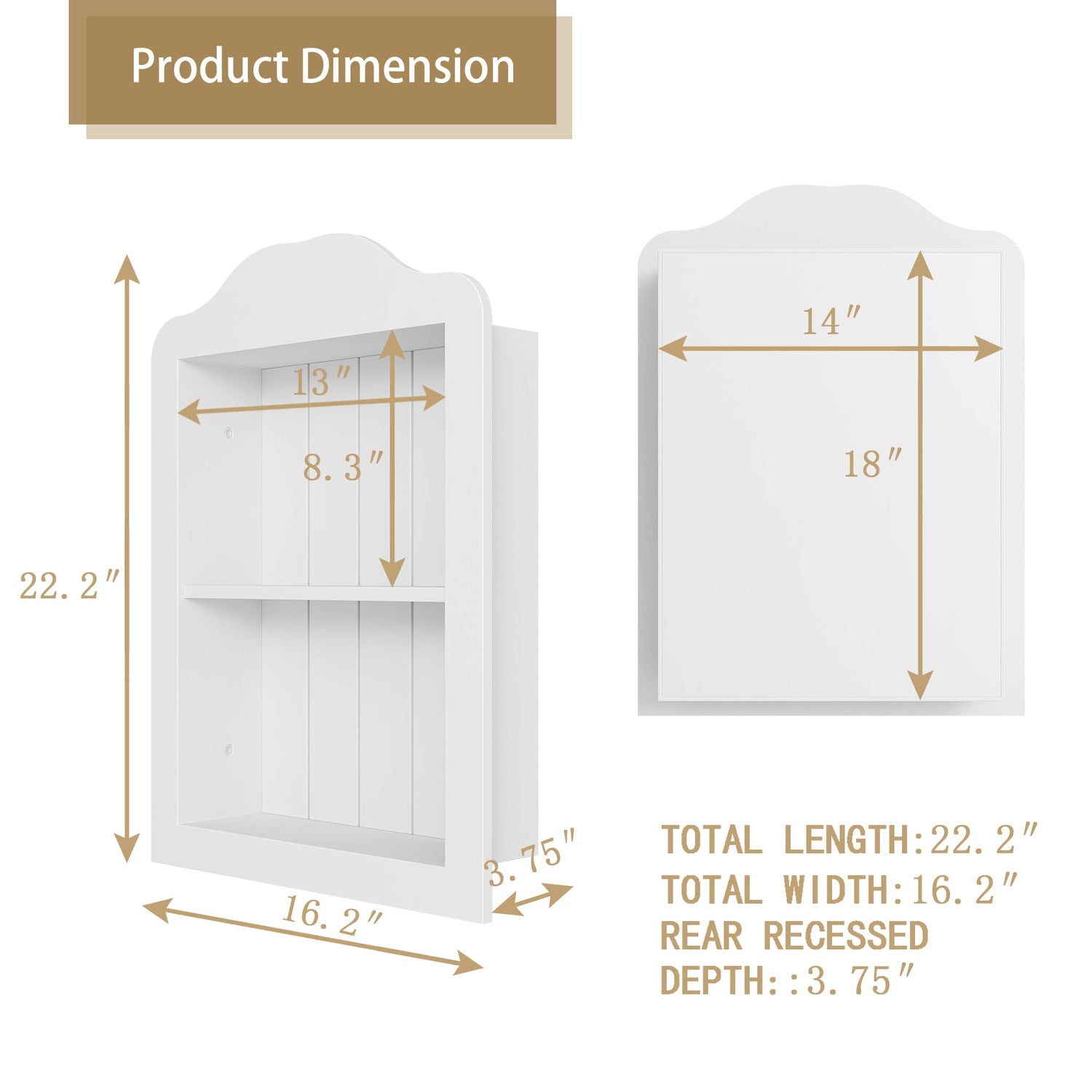CJL 14'' x 18'' Recessed Medicine Cabinet, Solid Wood in-Wall Bathroom Cabinet, Arched Wall Niche Shelf, 2-Tier, White