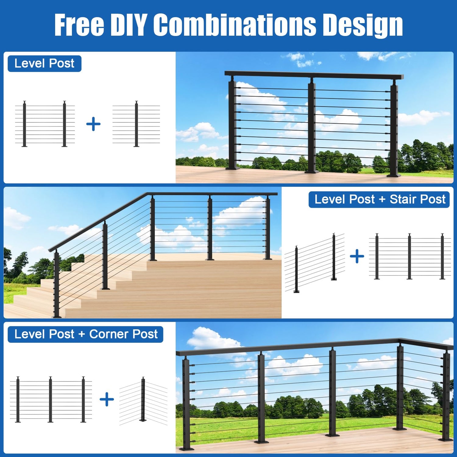 - 【Expand Options & Customization】Build black deck cable railing post kit system maximizing cost efficiency with expand options: Level Posts-CKE LP01/LP02, Stair Post-CKE SP01, Corner Post-CKE CP01/CP02, 36" and 42" sizes black cable railing post and complete railing post kits set are available to choose. Cable Post Flat Handrail-CKE HT01/HT02. If you need a complete personalized solution, please contact us for free professional and customization design before-sales or after-sales service.