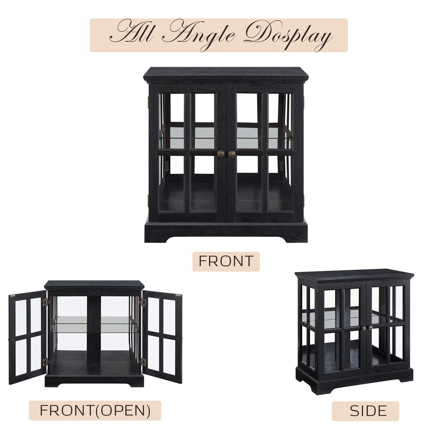 - [Timeless Vintage Charm with Modern Elegance] - This glass display cabinet combines classic vintage aesthetics with contemporary functionality, featuring a refined two-door design that blends seamlessly into any interior. Whether used in a living room, dining area, or office, its sophisticated craftsmanship elevates the ambiance with an everlasting touch of elegance. Natural Wood Grain - Unique grain variations enhance character, offering a warm, high-end look.