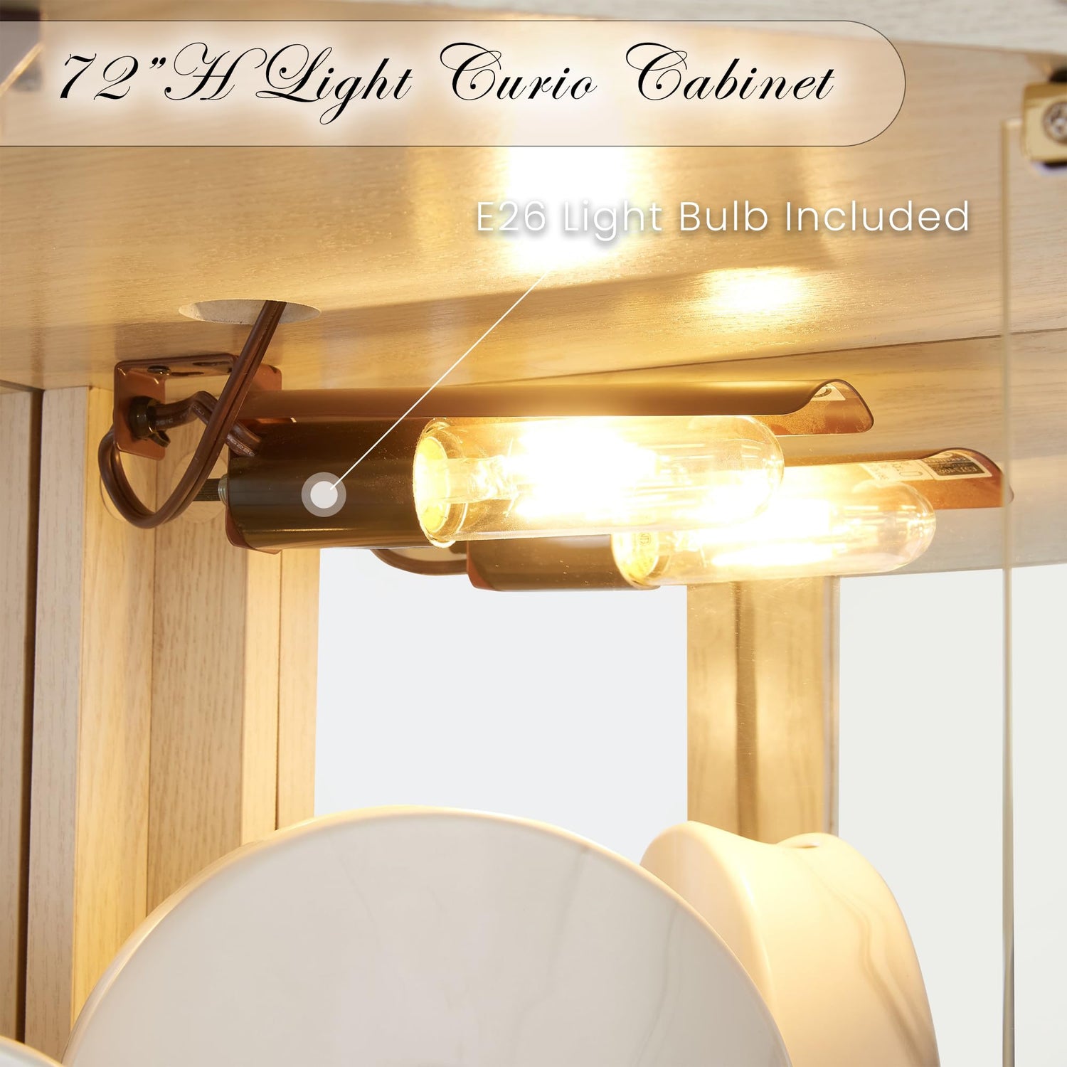 - [Timeless Classic Charm] Available in rich Cherry and Oak finishes, this curio cabinet blends historic elegance with modern functionality. The curved top and mirrored back panels elevate its lighted display, making it a stunning accent for living rooms, dining areas, or home offices.