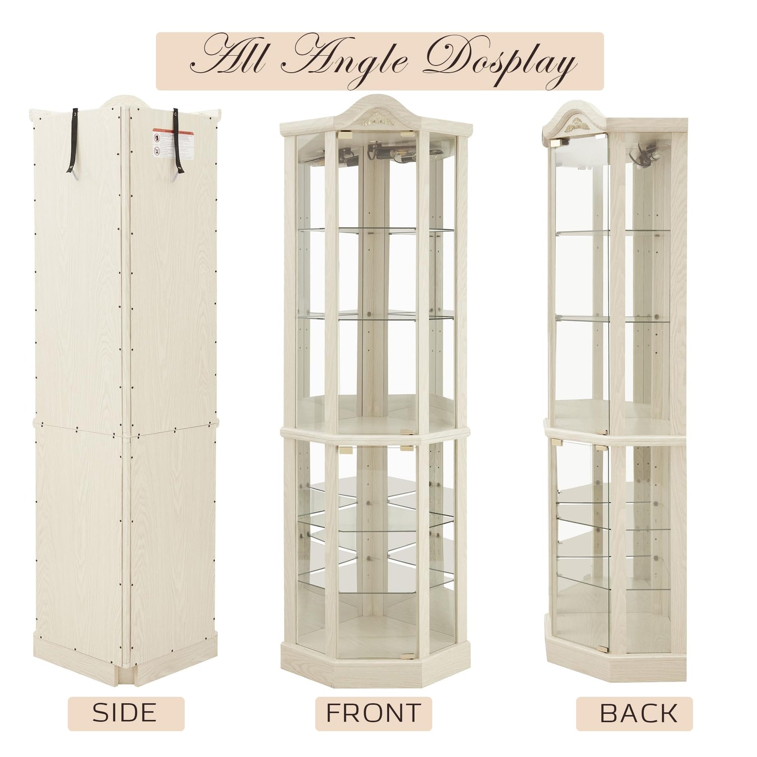 - [Quick & Easy Assembly] No need to stress about setup! This corner curio cabinet assembles in under 100 minutes with easy-to-follow instructions. Just remove the protective film from the acrylic sheet and follow along for a seamless installation. Once fully built, this lighted curio cabinet measures 16.73"(D) x 16.73"(W) x 71.93"(H), perfect for displaying your china, glassware, or collectibles.