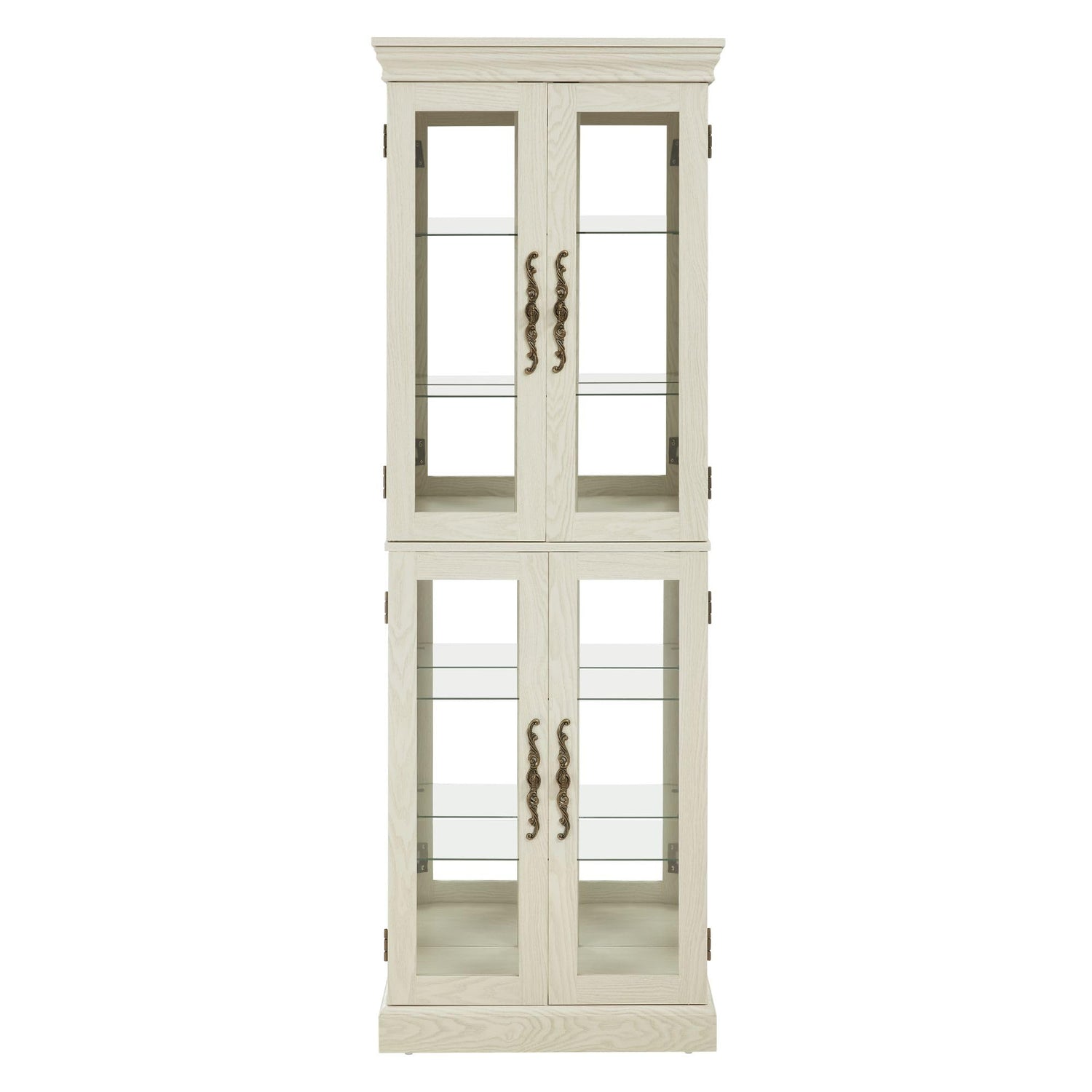 - [Natural Classic Design]This wood cabinet with glass doors is available in White and Oak. It has a curved and smooth silhouette, adding elegance to any room. Ideal for use in the dining room for dish storage or in the living room to display keepsakes