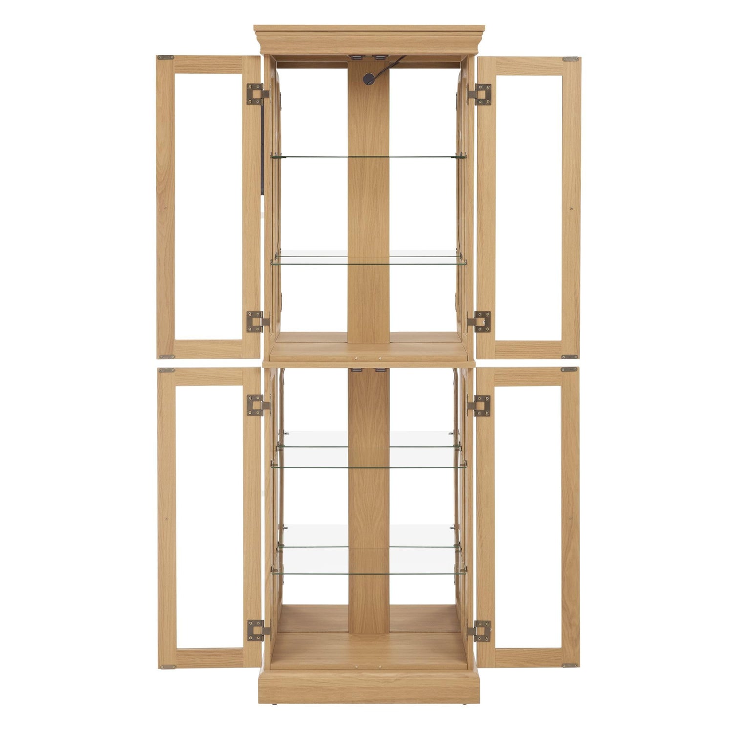 - [Natural Classic Design]This wood cabinet with glass doors is available in White and Oak. It has a curved and smooth silhouette, adding elegance to any room. Ideal for use in the dining room for dish storage or in the living room to display keepsakes