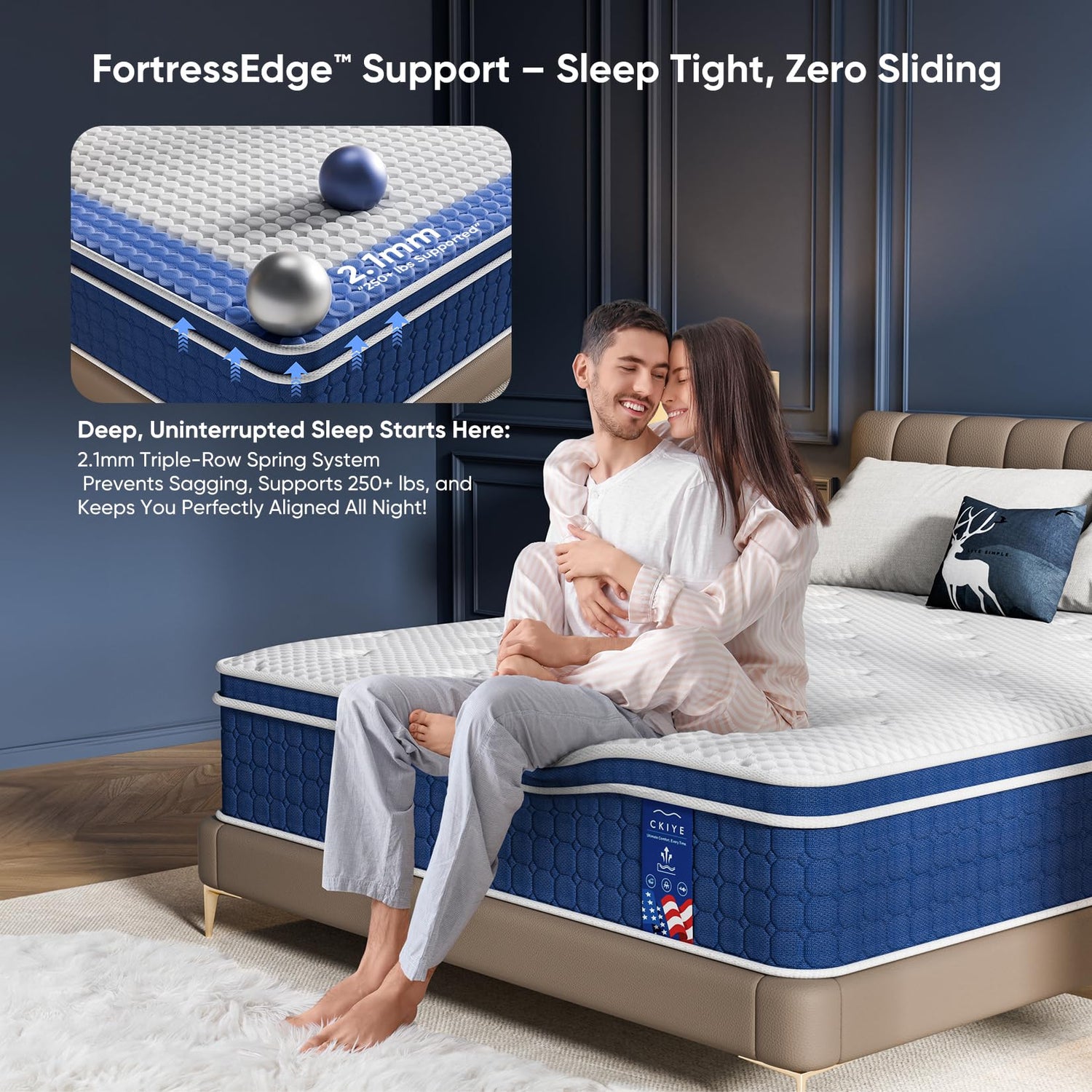 - 【EDGE-TO-EDGE STABILITY】Triple-reinforced perimeter coils prevent sagging and slipping, ensuring full usability of your mattress queen size. Sit or sleep near the edge confidently—no roll-offs or instability. Perfect for restless sleepers, couples, or those sharing a queen mattress with pets.