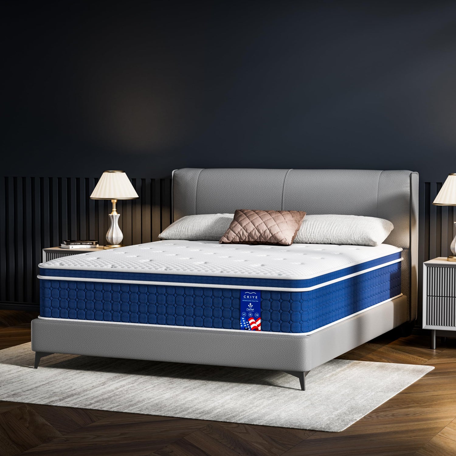 Ckiye 12 inch Queen Size Mattress 80''*60''*12'' Hybrid Medium Firm Memory Foam in a Box with Pocket Springs CertiPUR US Extra Edge Support Anti Sag Design Pressure Relief Queen Mattress