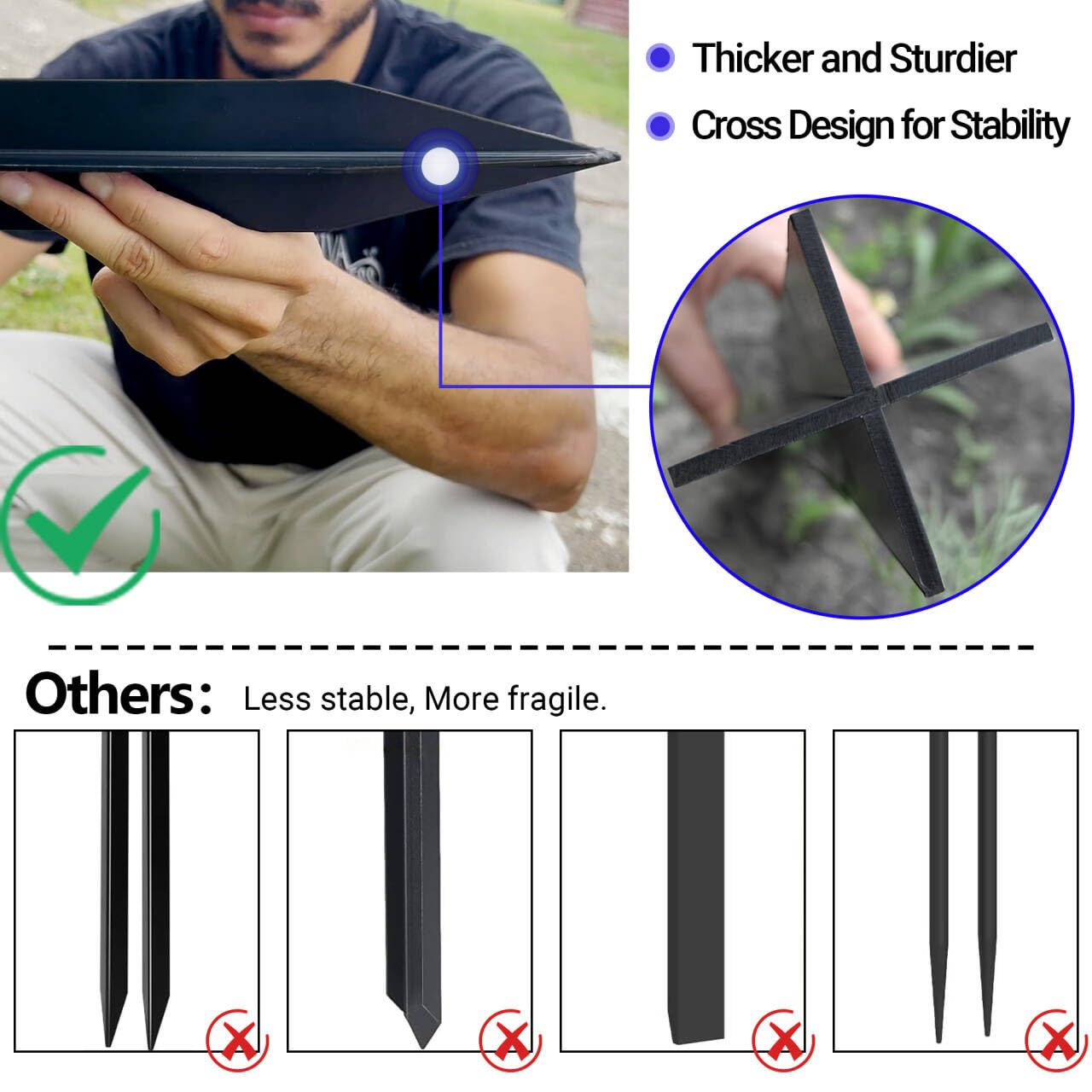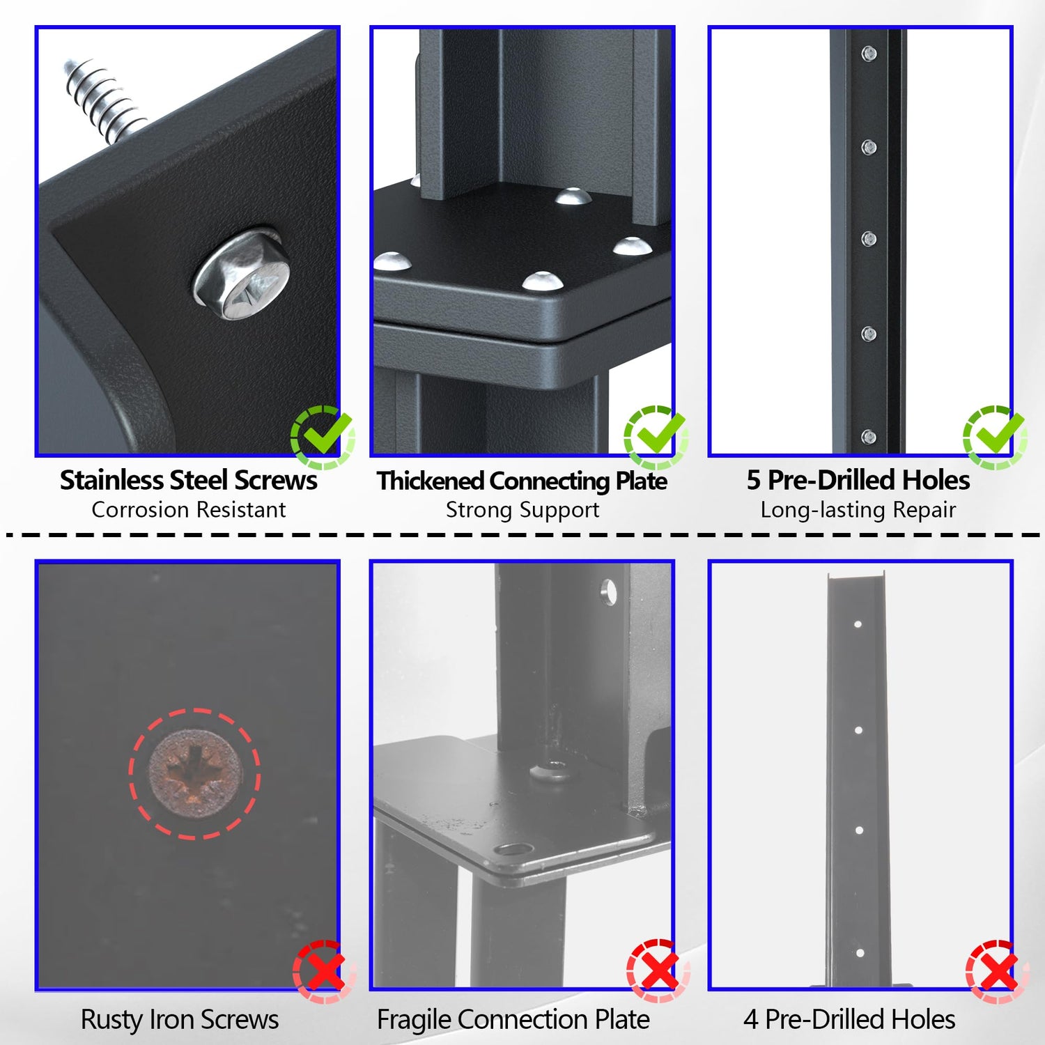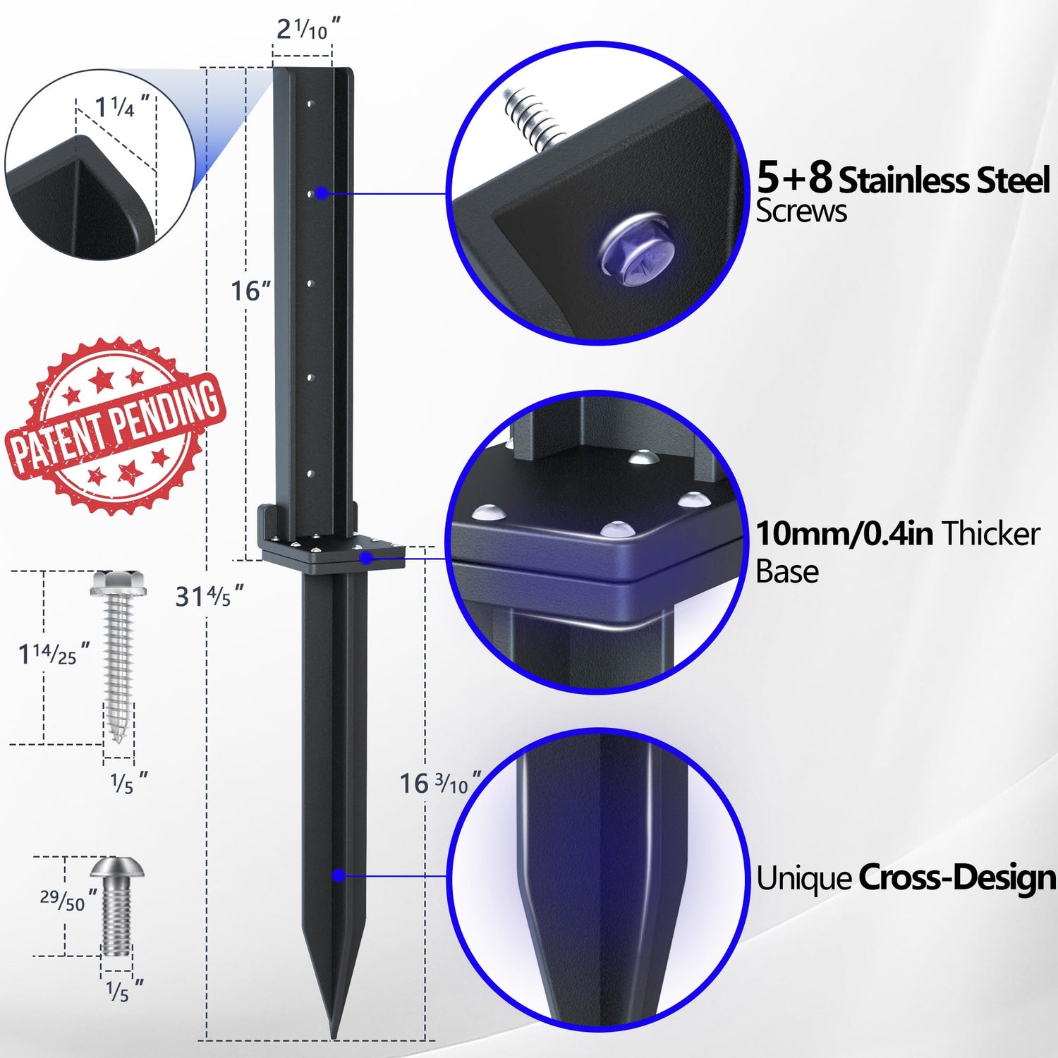 - Unmatched Thickness: Unlike others, the fence post repair stakes feature reinforced thickened bases and 8 long screws for stable support. Stronger welded ground stakes and bases resist breakage when driven into the ground