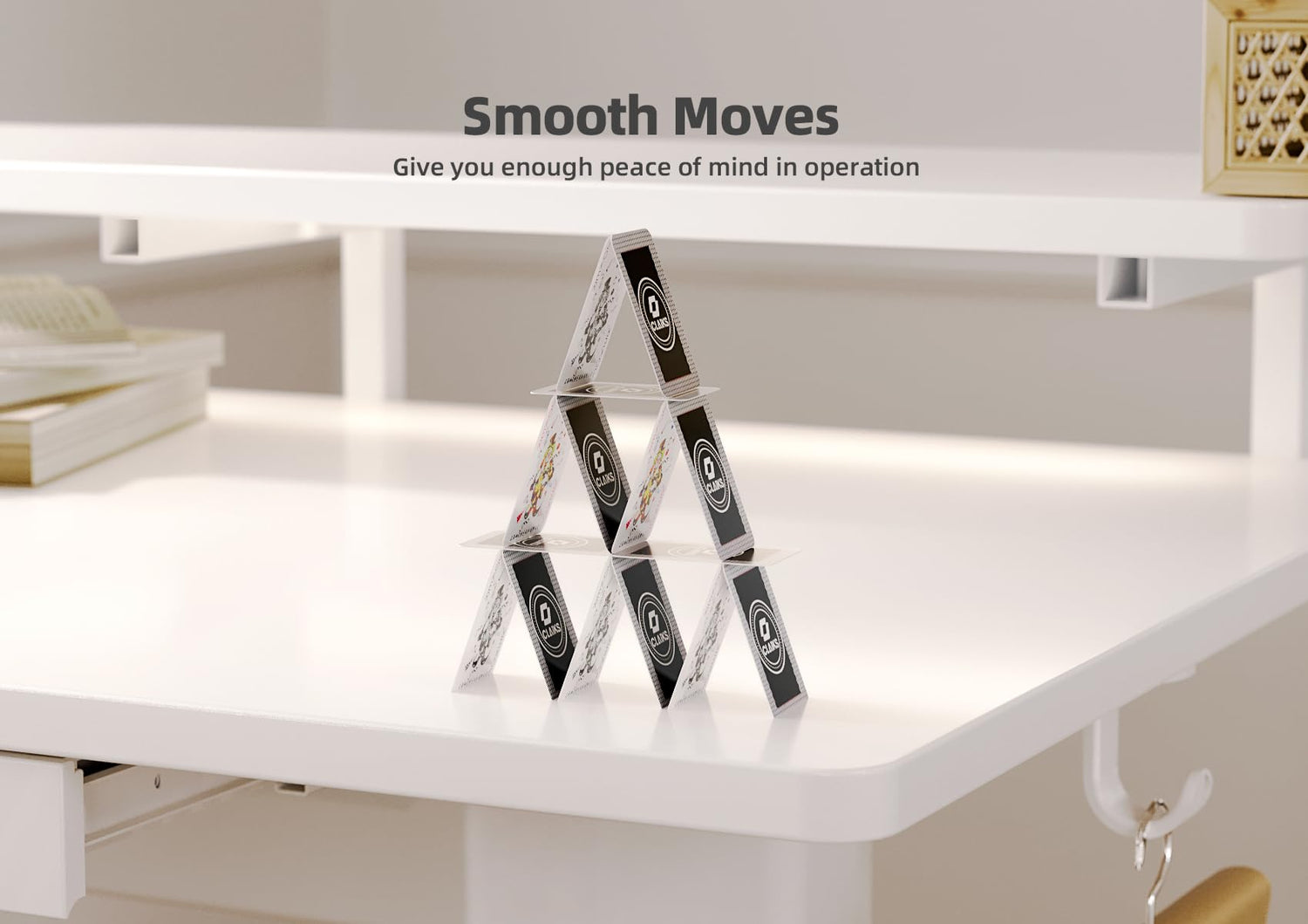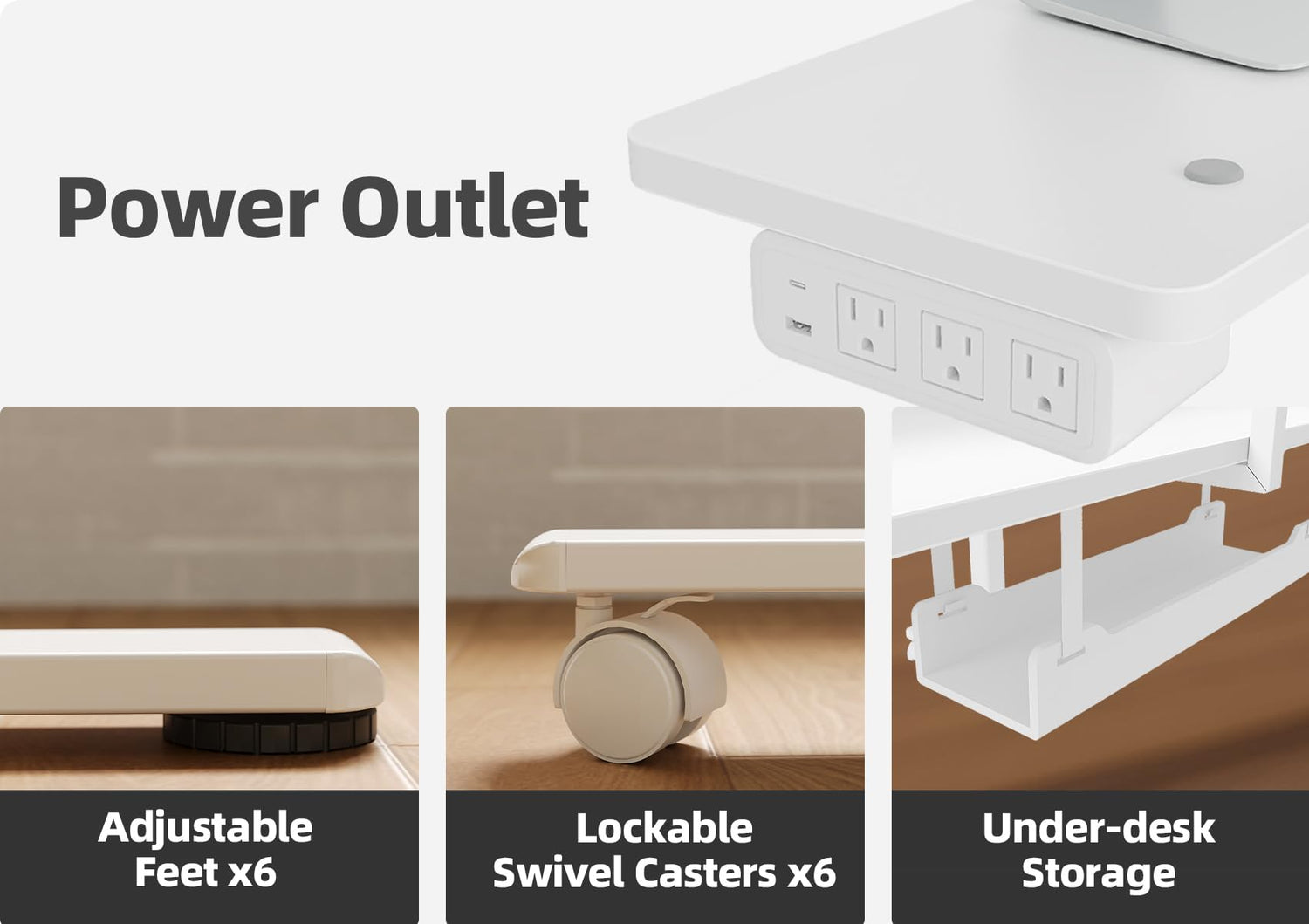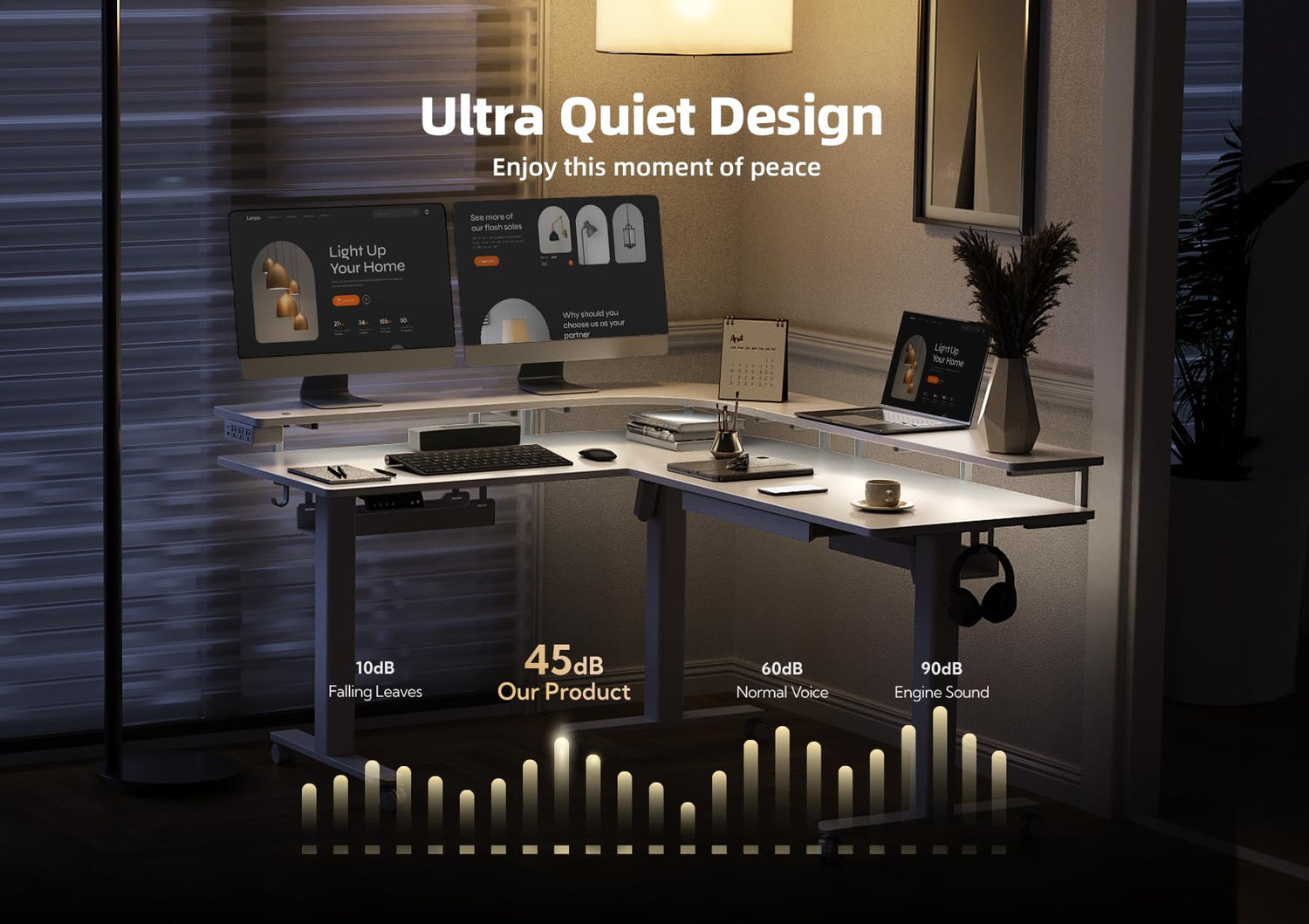 - Silent Lift System: Featuring an advanced silent lift technology, the desk raises and lowers with almost no noise, avoiding the disruptive sounds of traditional adjustable desks. Whether you're in a meeting, taking a break, or deep in focus, you can enjoy a quiet office environment. The smooth, noiseless adjustment ensures seamless transitions between different work modes, providing a more peaceful and comfortable workspace for a better overall office experience.