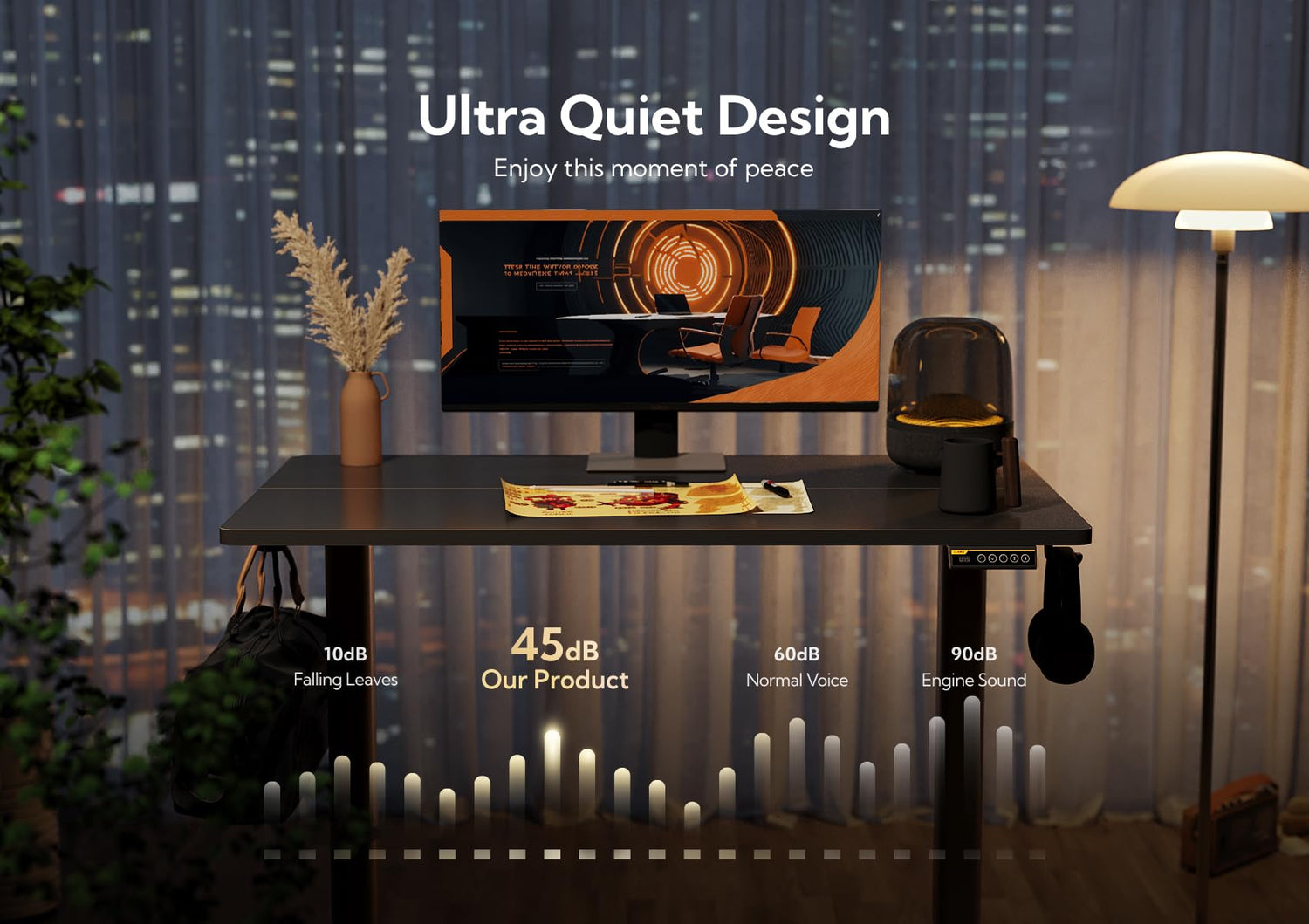 - Ergonomic Workspace: The spacious 48” x 24” adjustable desktop offers a roomy setup that promotes an ergonomic workspace.