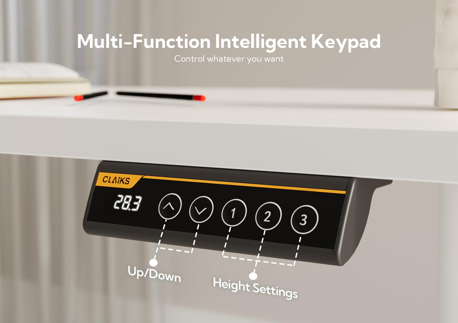 - Electric Height Adjustable: The stand up desk features three preset buttons to customize your desired heights from 28.3" to 46.5".