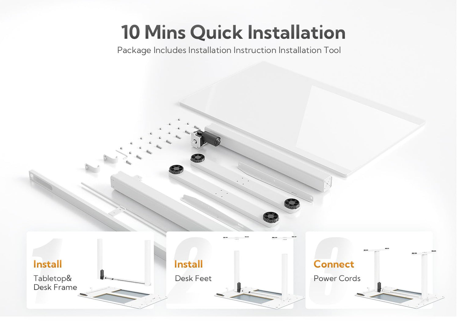 - Simple Assembly: Assembling our glass stand up desk is a breeze. Just attach the legs to the top, plug in the power cord, and you're good to go. The desk is capable of supporting up to 132 pounds