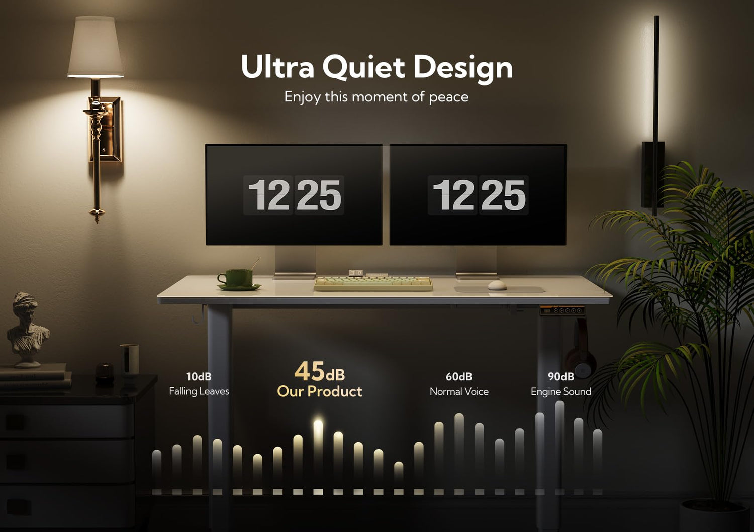 - Electric Height Adjustment: Our electric standing desk is equipped with a robust motor that smoothly adjusts the height from 28.3 inches to 46.5 inches (including the 2.36-inch desktop thickness) with 3 programmable height presets for quick and easy adjustment to your preferred height, catering to your needs