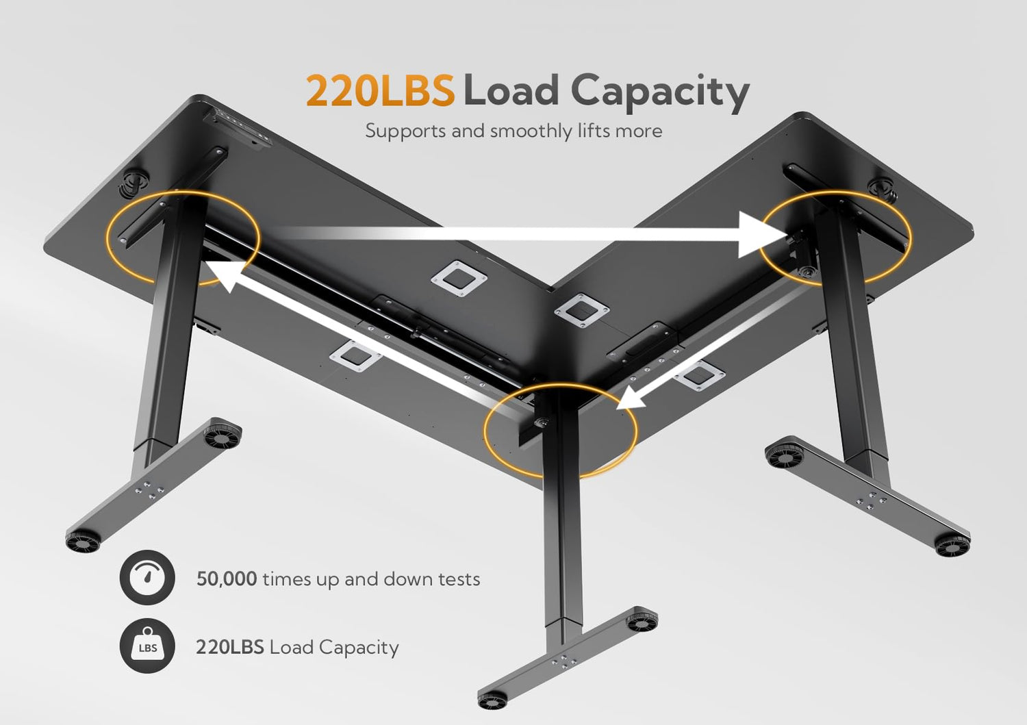 - Durable table top and sturdy steel frame make this sit stand desk more stable and less wobbly, dual motors provide strong power, weight capacity of 220lbs adjustable standing desk is your long-lasting work and life partner.