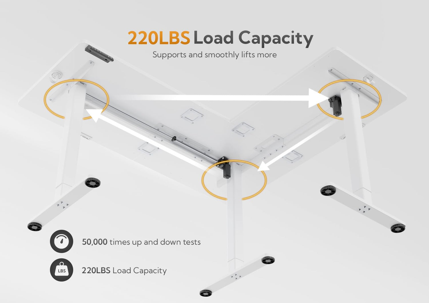 - Durable table top and sturdy steel frame make this sit stand desk more stable and less wobbly, dual motors provide strong power, weight capacity of 220lbs adjustable standing desk is your long-lasting work and life partner.