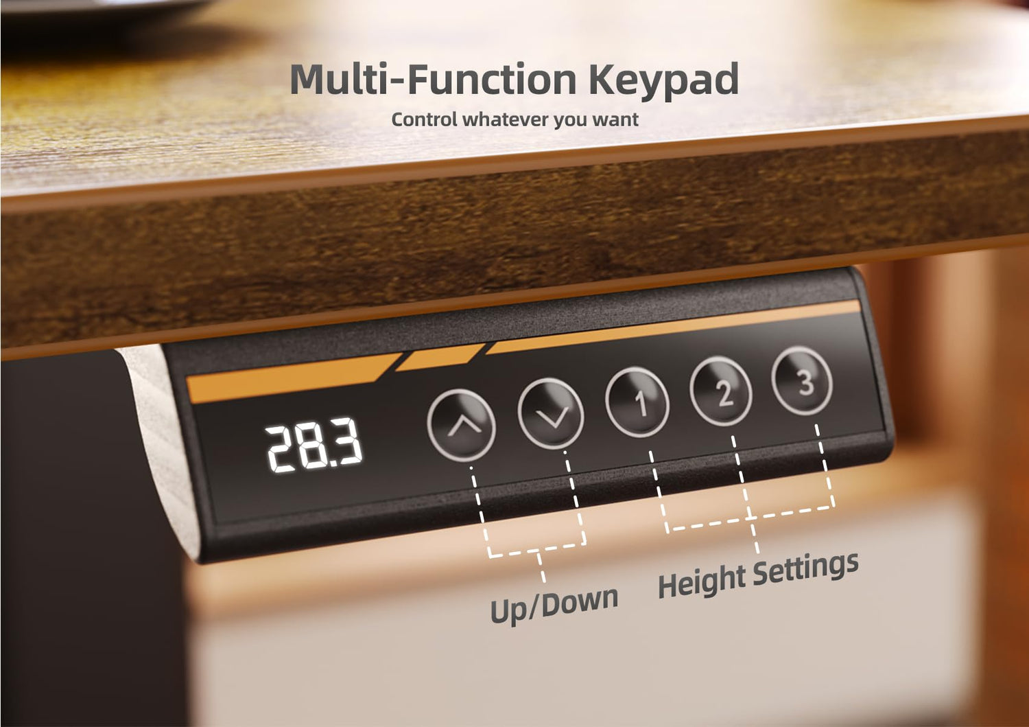 - Smooth Height Adjustment: Freely select adjustable standing desk height, from 28.35" to 46.46". Save your favorite three settings and smoothly switch the electric standing desk between them.