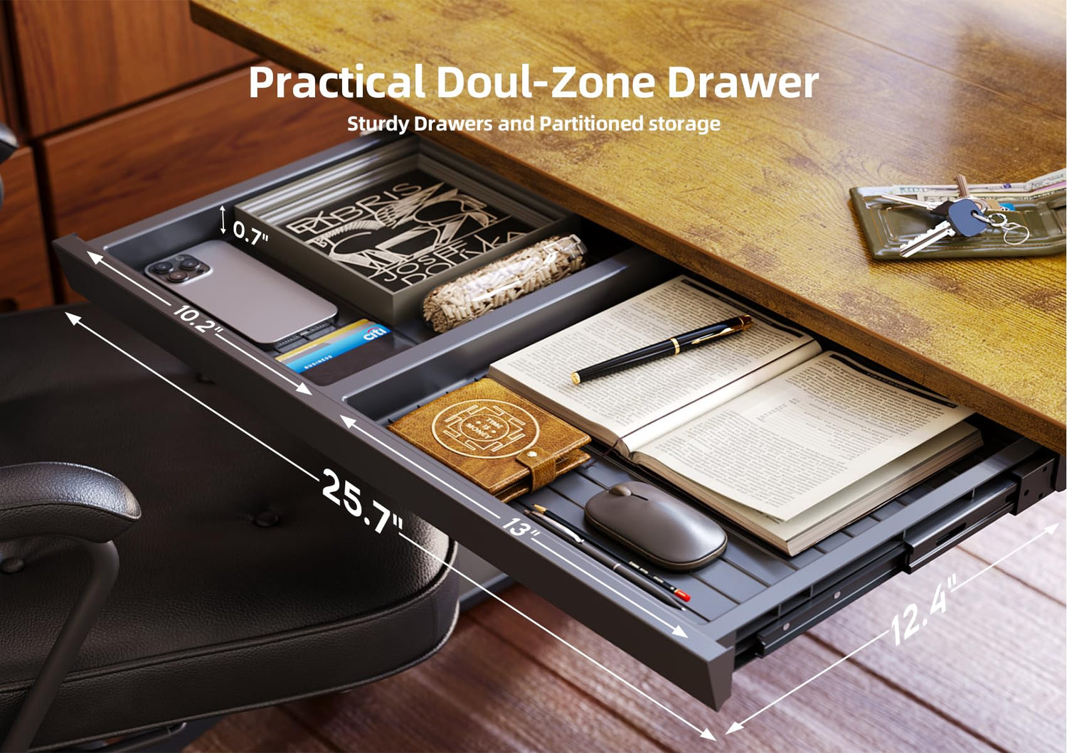 - Bigger and more stable plastic drawer - The large size plastic drawers, measuring 25.6"×11.8", help you organize more desktop items. The unique drawer slide design makes the drawers more stable and durable, recommended maximum load capacity is 11 lbs.