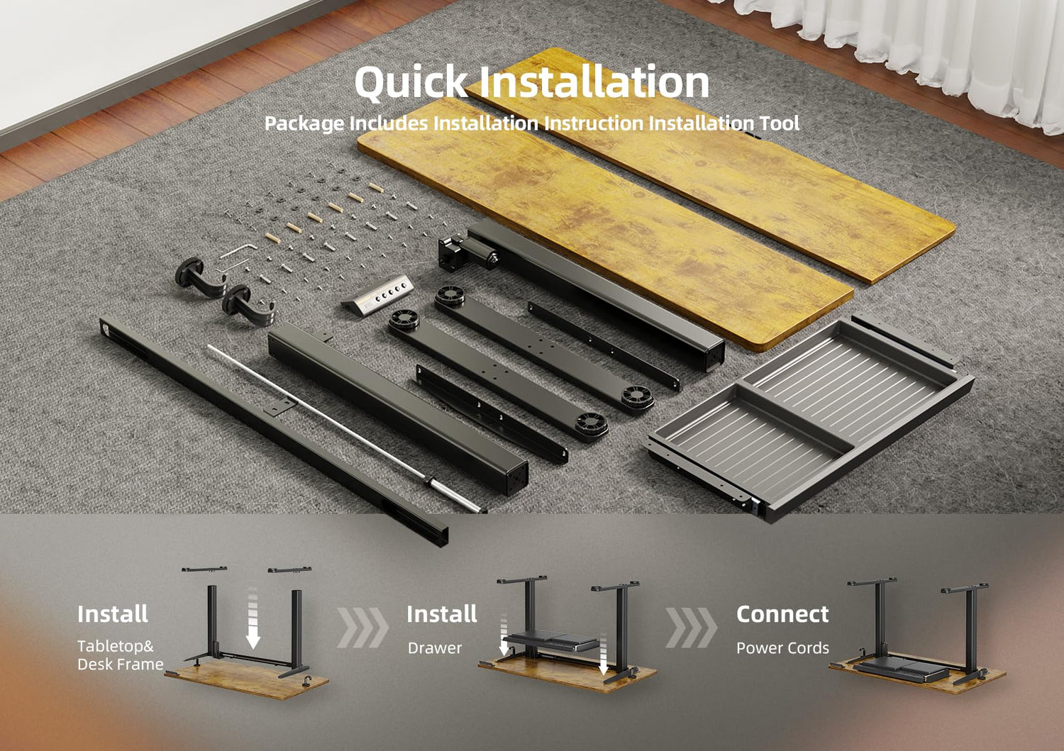 - Practical Accessories: The electric standing desk comes with 2 hooks, and a plastic drawer, which provides more home office desk usage possibilities.